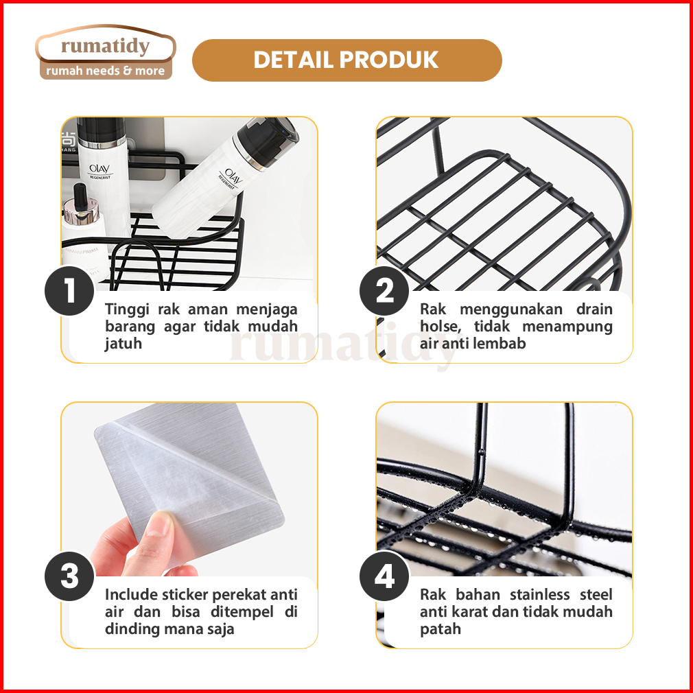 Rumatidy - Rak Dinding Kamar Mandi Dapur Tanpa Bor Rak Sudut Gantung Stainless Multifungsi