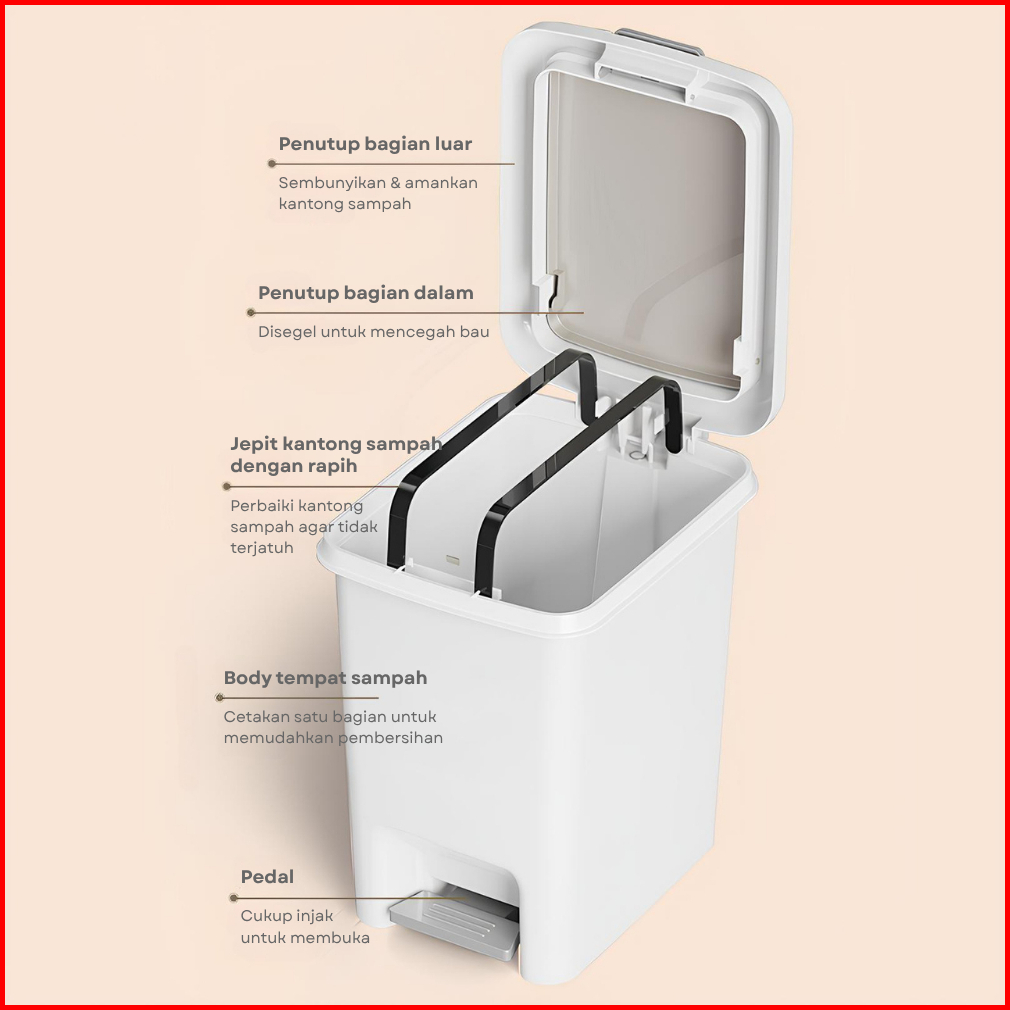 Funnycook Tempat Sampah Injak 15l Tong Sampah Plastik Tertutup Trash Bin Kotak Sampah Dapur