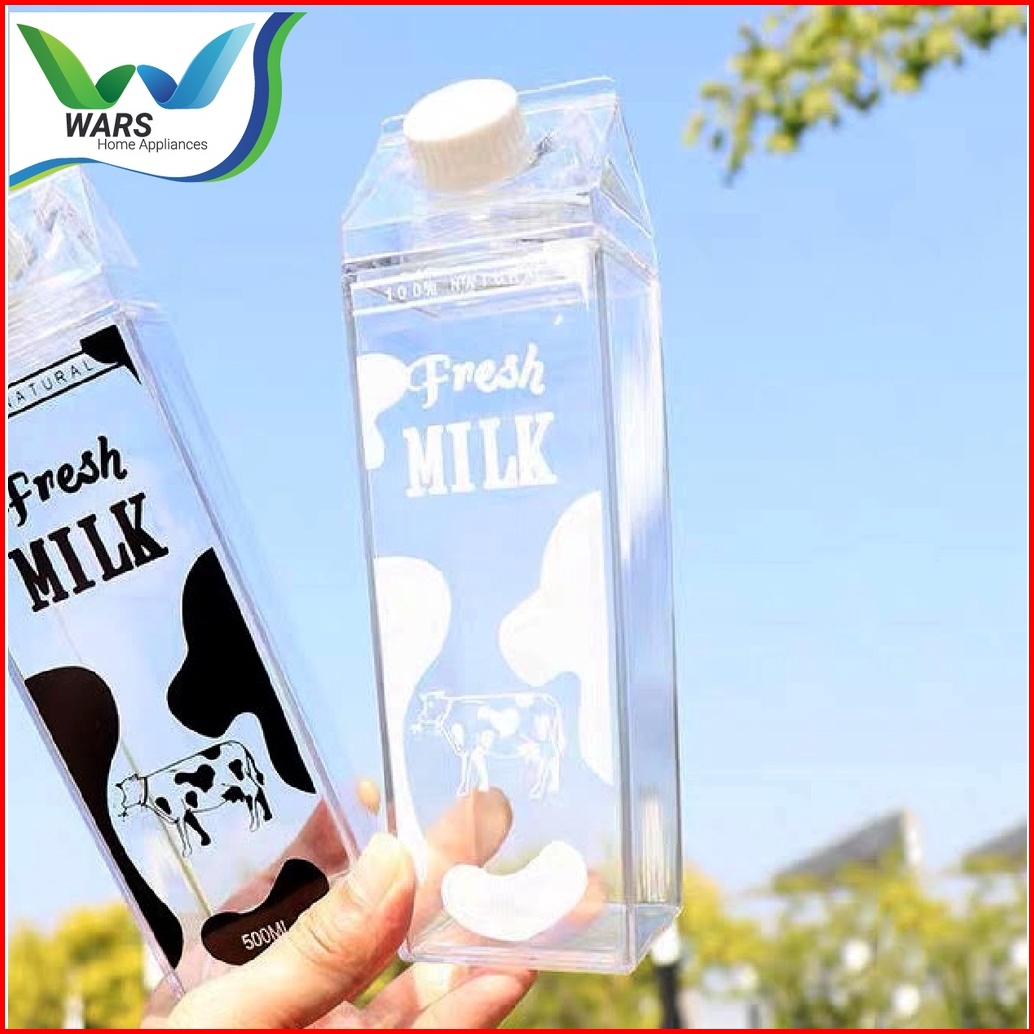 Wars Botol Minum Kotak Susu - Karton Jus Polos Motif 500 1000 Ml Acrylic Tebal Bening Transparan