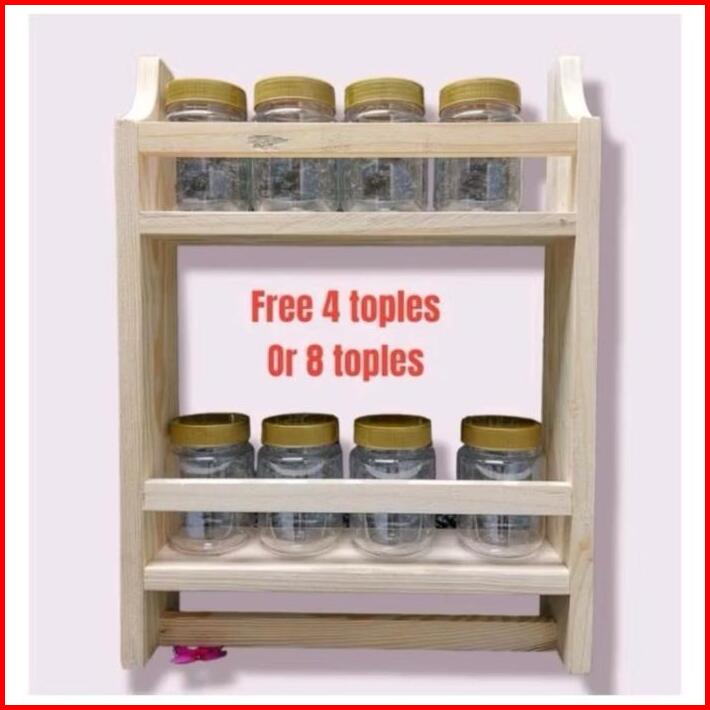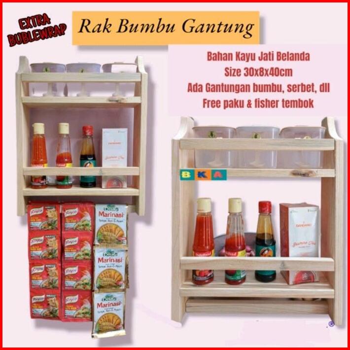 Rak Bumbu Gantung Serbaguna Tempat Bumbu Rak 2 Susun Rak Tempel Dinding Jati
