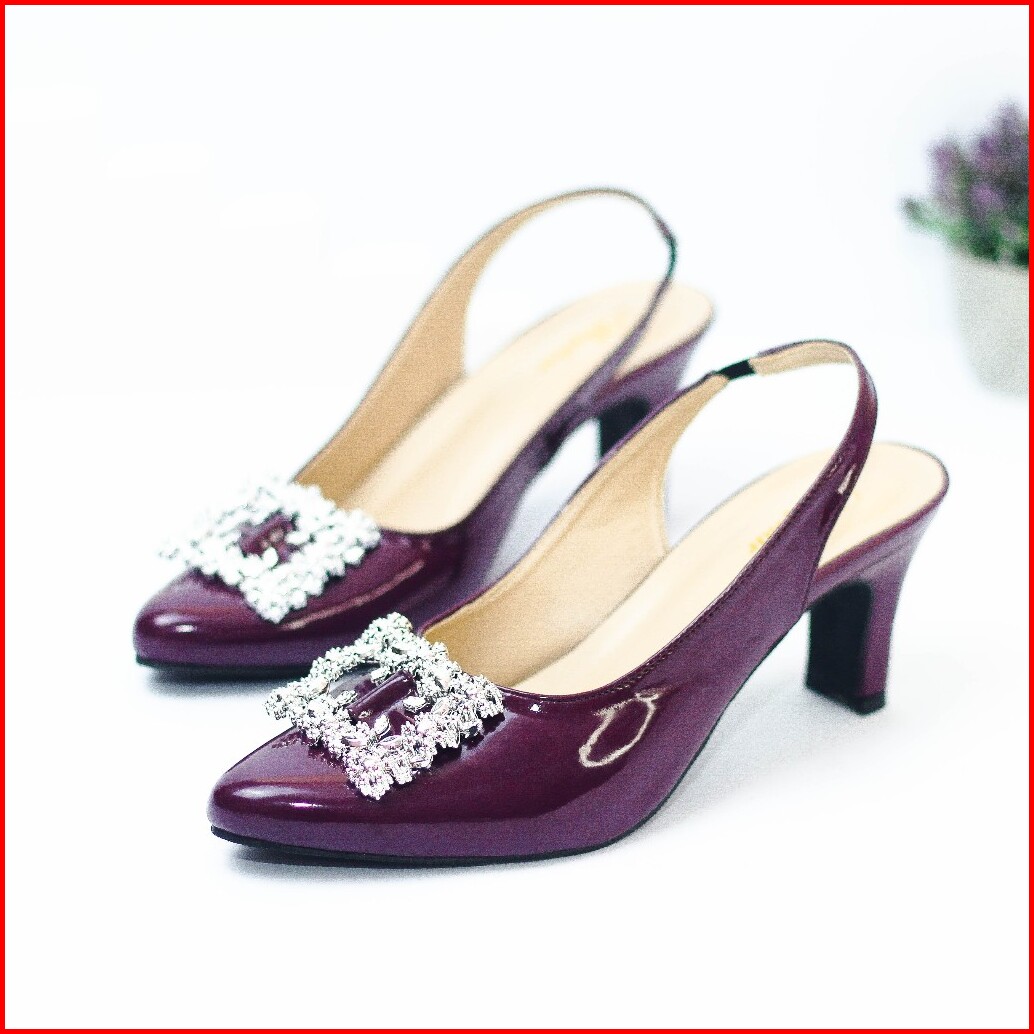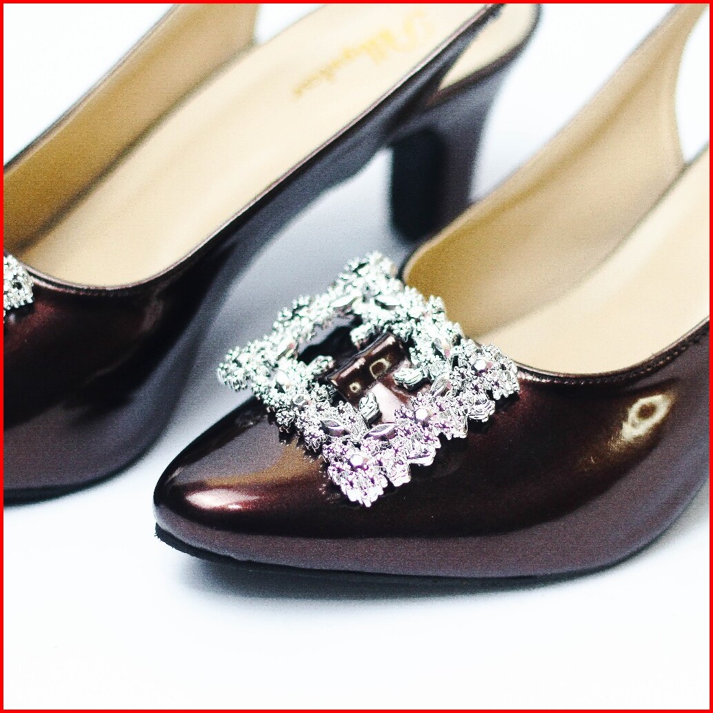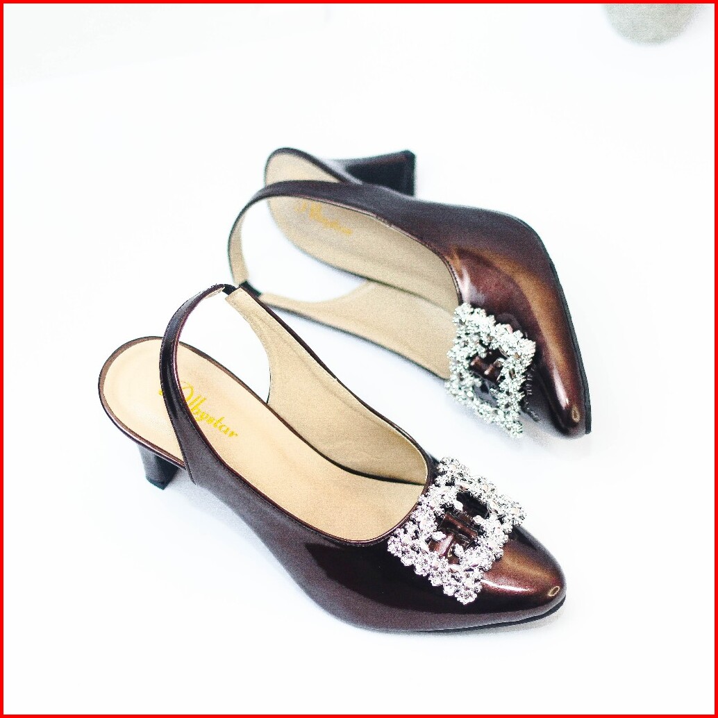 Novisyahh - Sandal Heels 5 Cm Cantik Sandal Hak Wanita Motif Gesper Mutiara