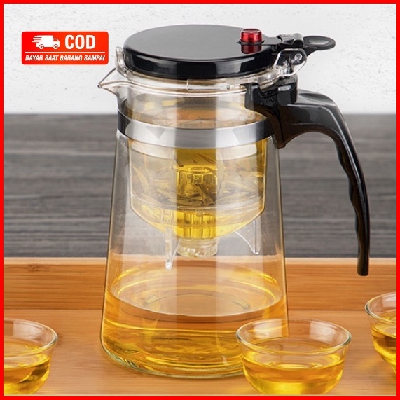 Teko Teh Kopi Dengan Saringan Teapot Teko Pitcher 350ml 500ml 750ml 900ml With Saringan Infuser - Transparent