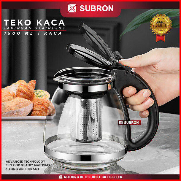 Subron Glass Teapot Teko Kaca Saringan Stainless 1600 Ml 2000ml Box