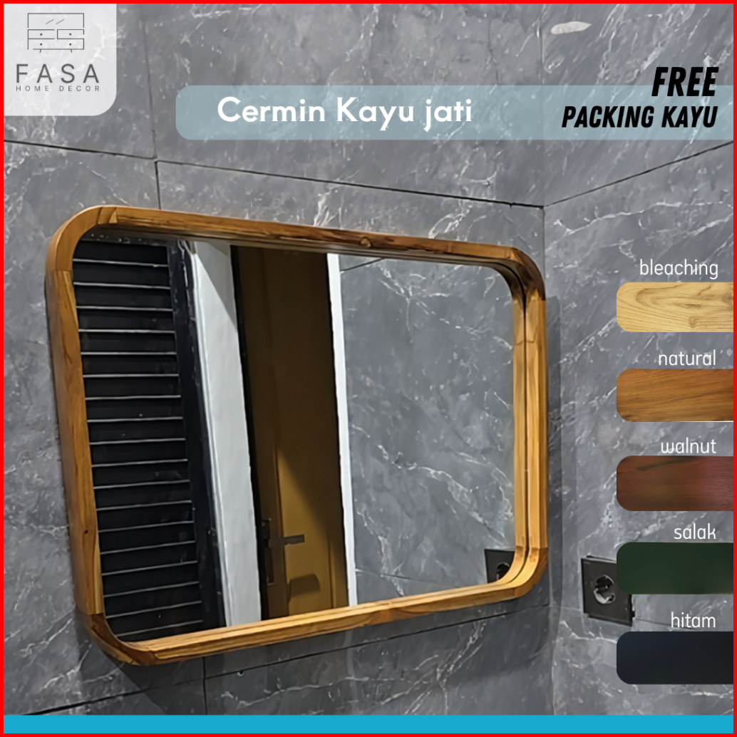 Cermin Kayu Jati Kotak Persegi Panjang Cermin Dinding Hias Minimalis Estetik Untuk Kamar