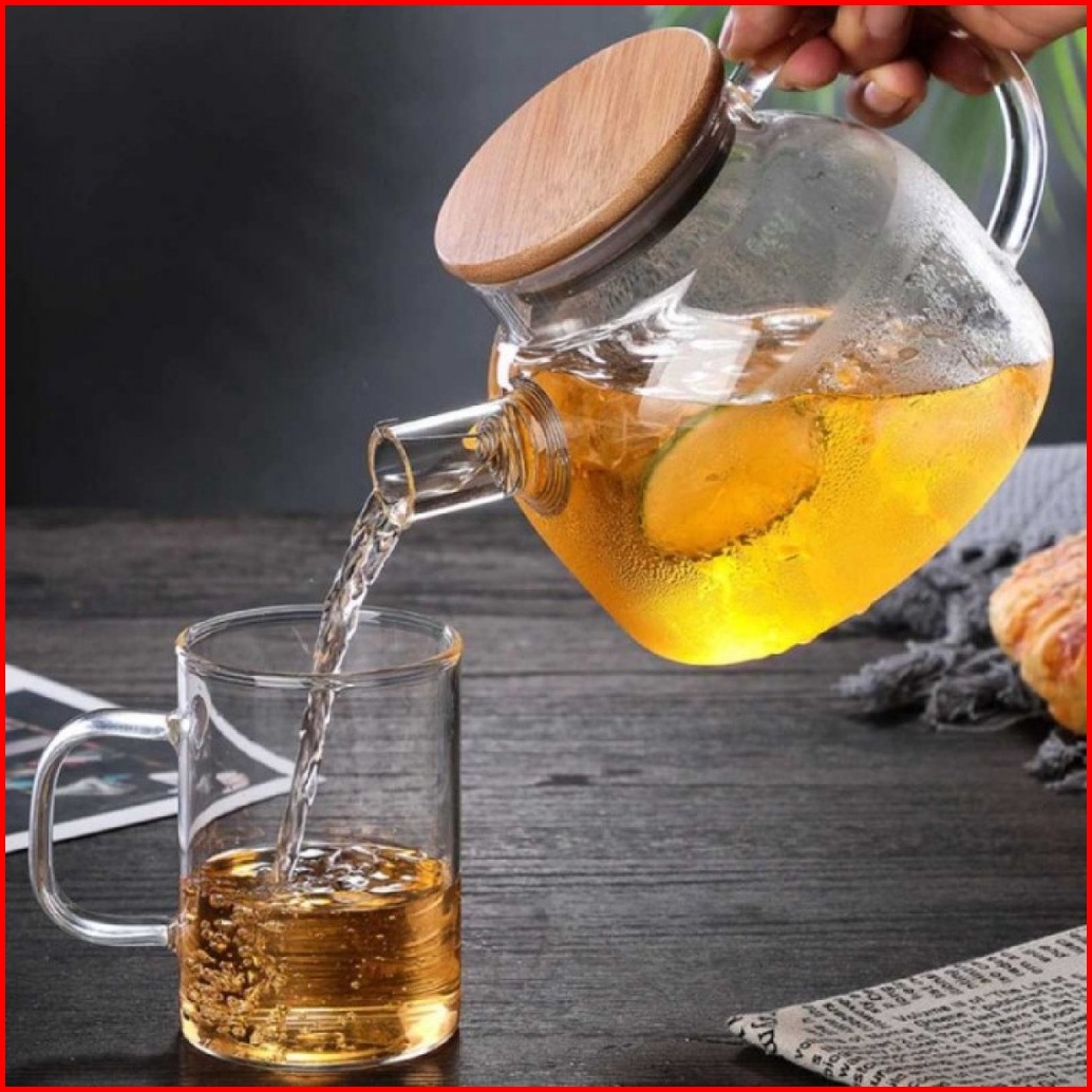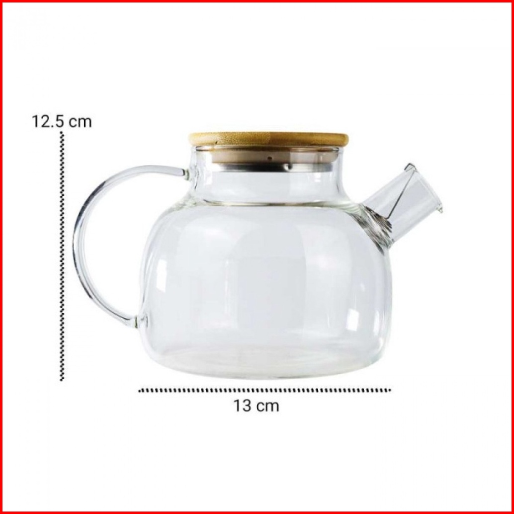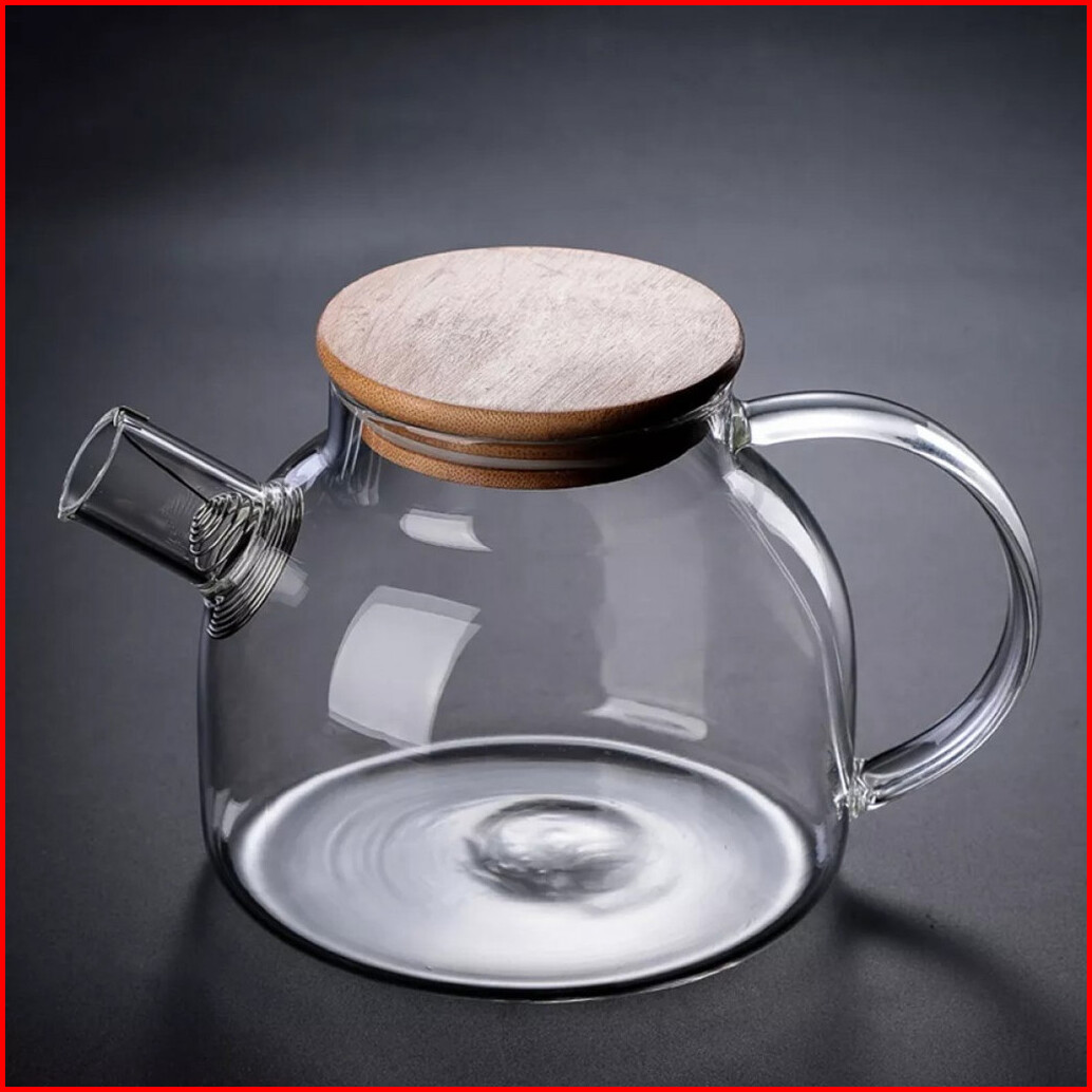 Teapot Teko Teh Air Panas Kaca Dengan Tutup Kayu Anti Panas High Borosilicate Berkualitas Tekko Kaca