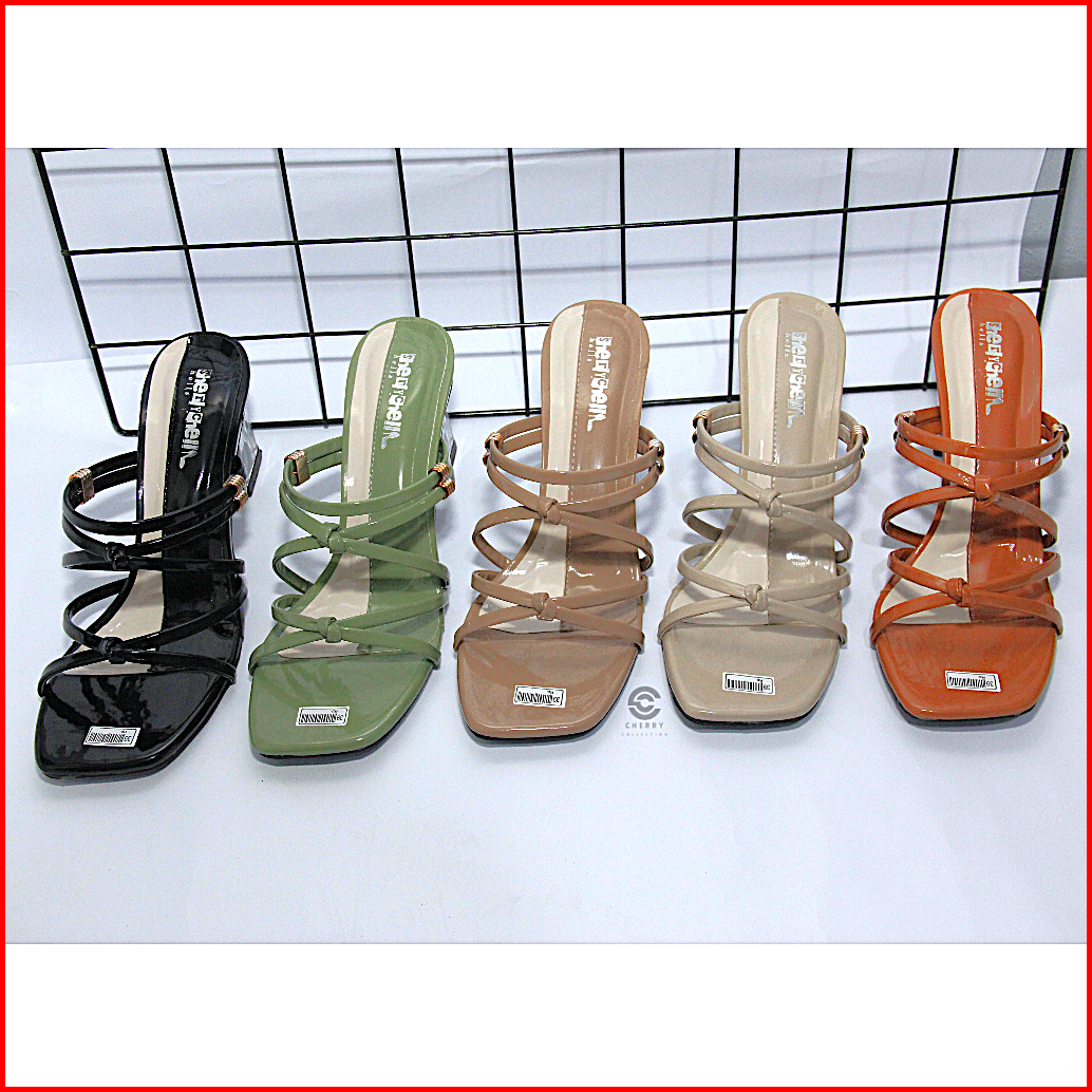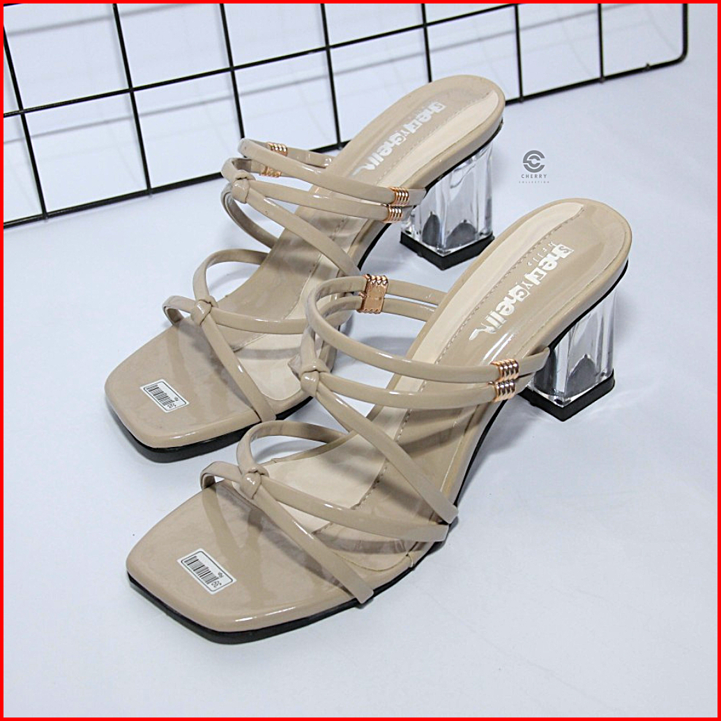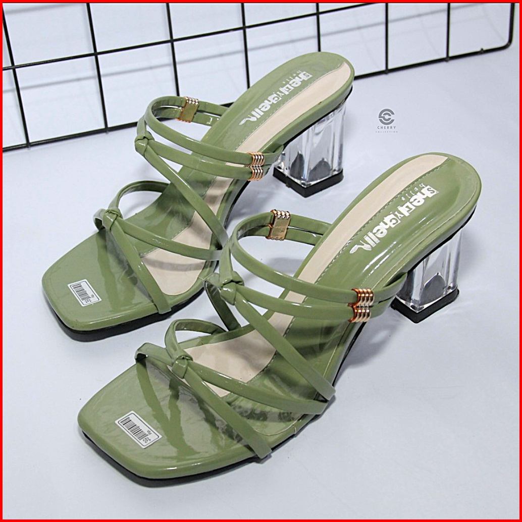Sandal High Heels Wanita Quenssa Strap Block Hak Kaca 7cm