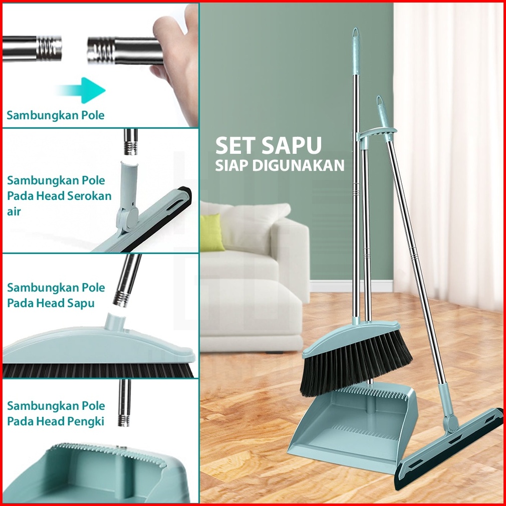 Hugohouseware Broom Set Dustpan Set Sapu Pengki Alat Pembersih Praktis Minty