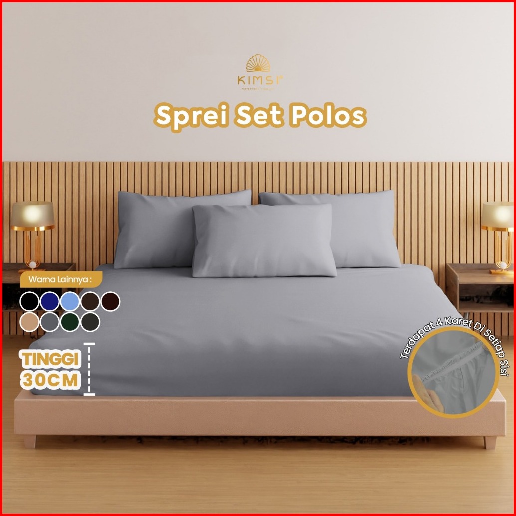 Sprei Set Katun Cotton Polos Premium Single Double 90x200 100x200 120x200 140x200 160x200 180x200 200x200 Tinggi 30 Bisa