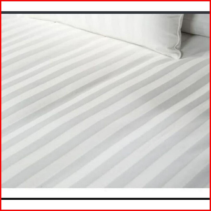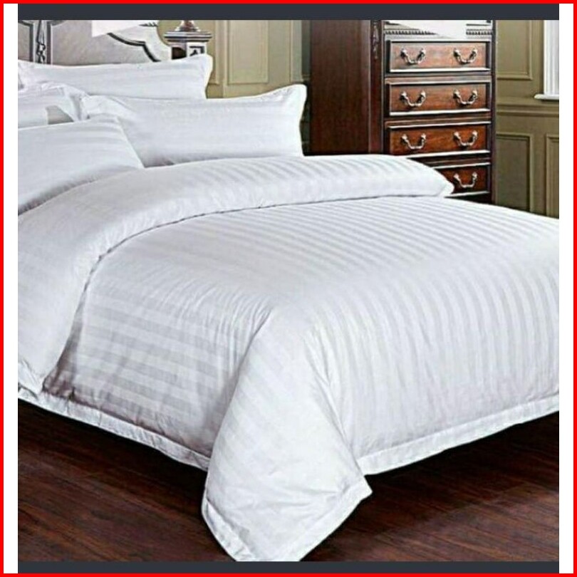 Sprei Set Bahan Katun Premium Salur Putih Hotel Ukuran 160x200