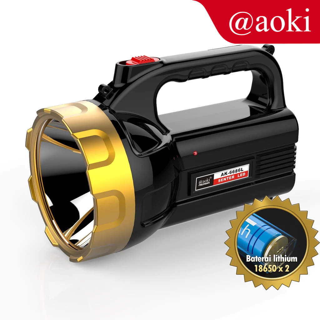 AOKI Senter led jumbo 20w baterai lhitium super terang tahan lama hingga 10jam