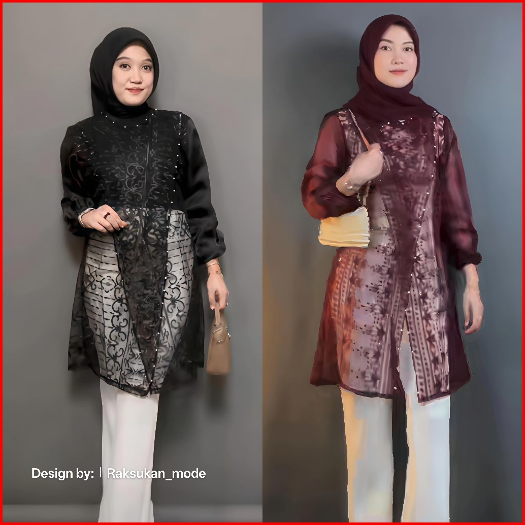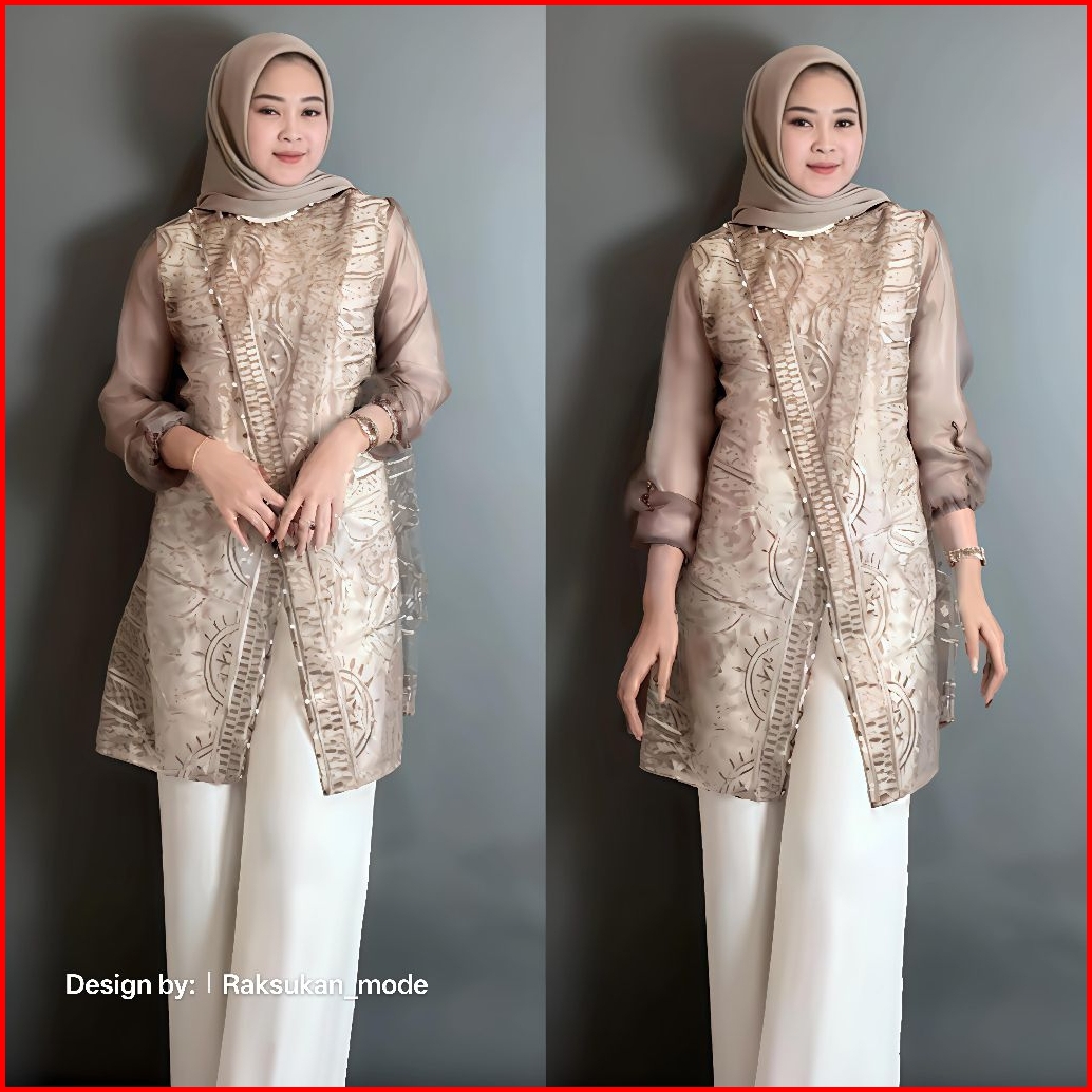 Keyra Outer Brokat Organza Full Payet Tunik Brokat Baju Hari Raya Baju Kondangan Dan Wisuda