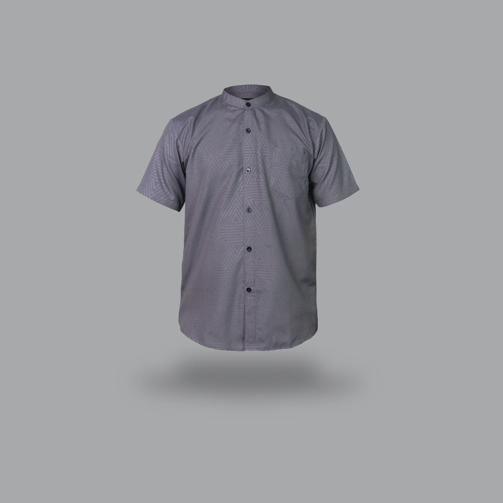 Khaf97 Koko Pria Lengan Pendek Kemko Polos " Faizan " Motif Embos Abu - Abu