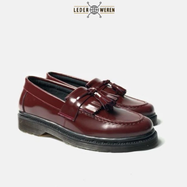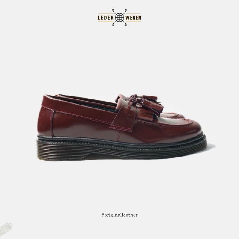 Lederweren- Leder Loafer 2 Burgundy-Loafers Pria Maroon–Slipon Formal Nyaman- Kerja Kuliah Kondangan