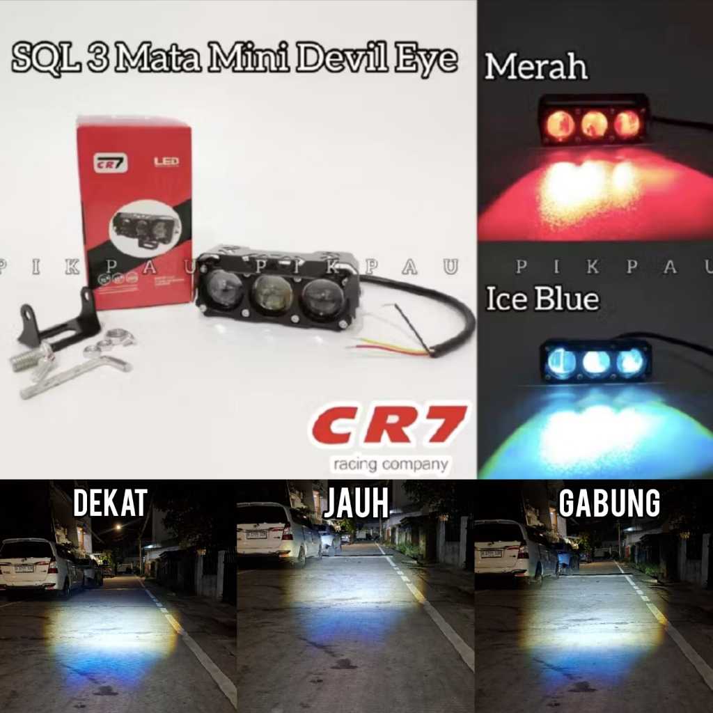 Lampu Tembak MINI Laser 3 Mata Devil Eye Super Terang Full Aluminium Putih Kuning