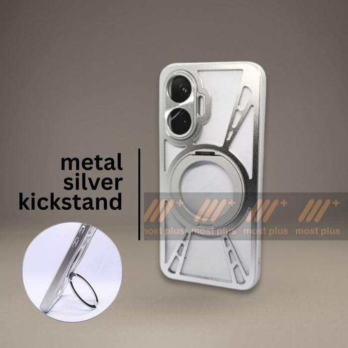 [Star] CASING for POCO F7 5G ARMOR HYBRID MAGNET KICKSTAND CASE COVER for XIAOMI POCO F 7 5G - METAL SILVER KICKSTAND