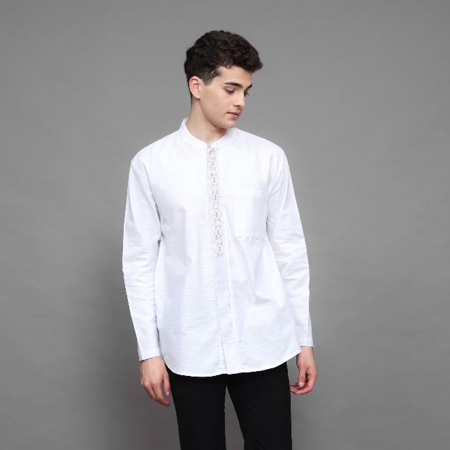 Loa Studios - Baju Koko Kemeja Pria Bordir Lengan Panjang Putih - Emir