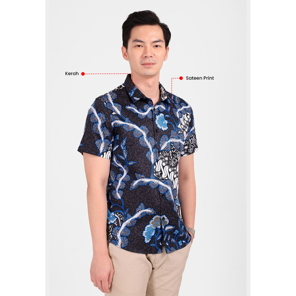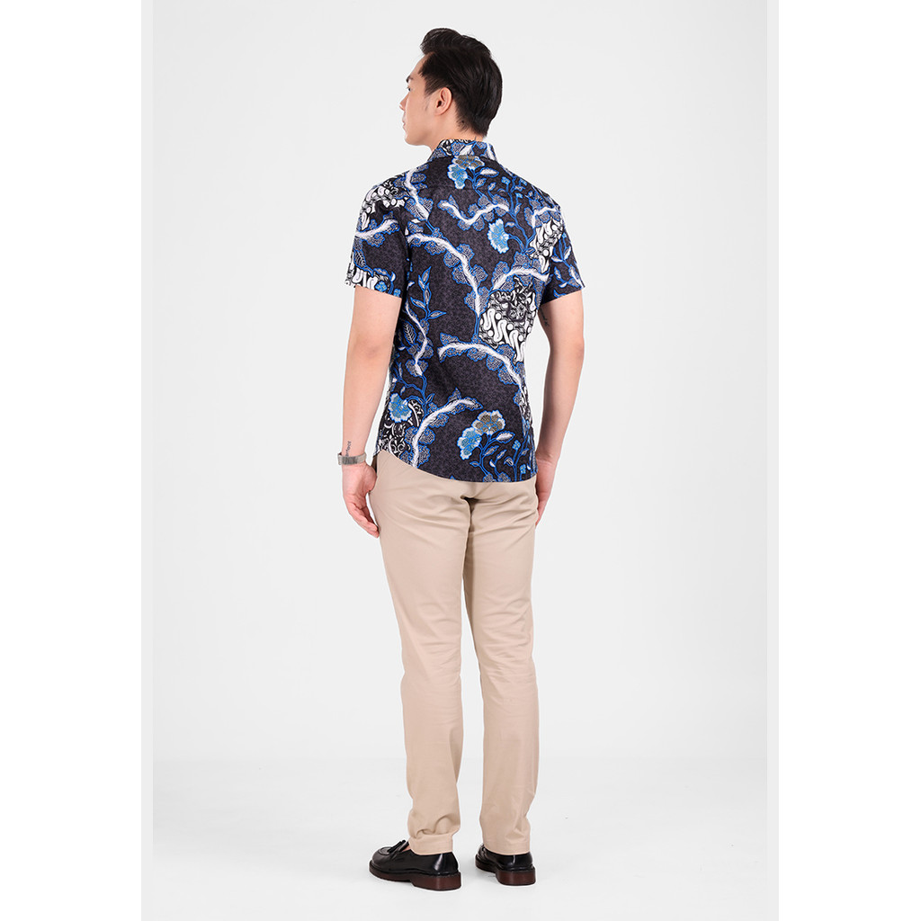 Manzone - Kemeja Batik Lengan Pendek Pria Bimareka Slim Fit - Black