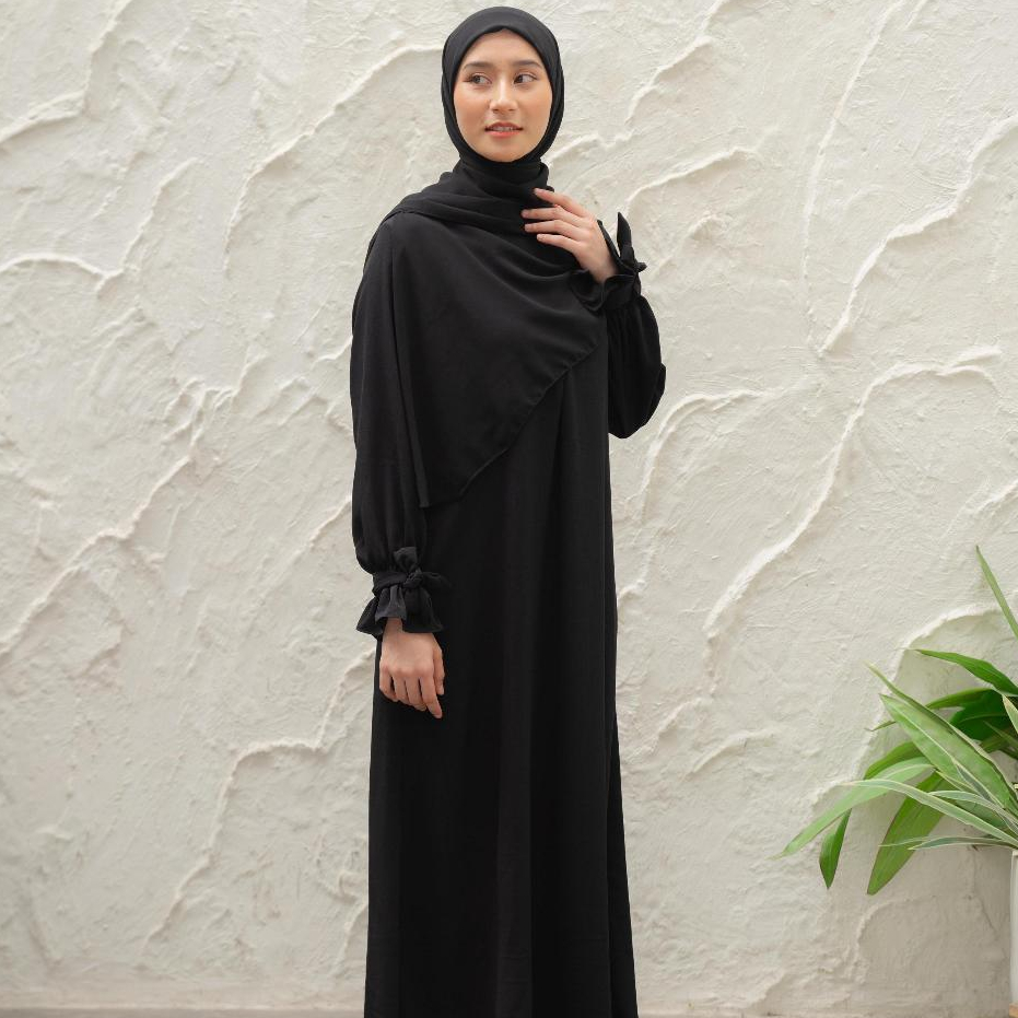 Maisaya.Id - Noya Dress Abaya Gamis Polos Premium Bahan Yoryu | Gamis Wanita Umroh Hitam Gamis Daily