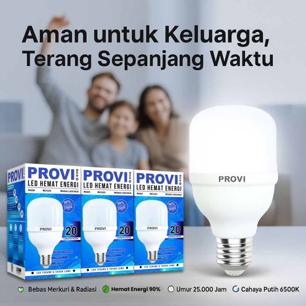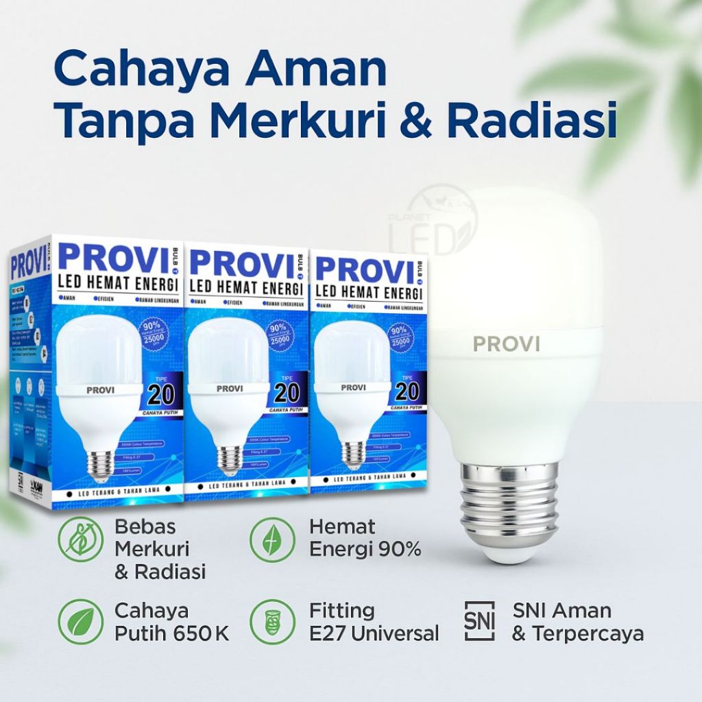 Lampu LED Tabung Jumbo Bohlam PROVI TIPE 20 Cahaya Putih Paket isi 3pcs