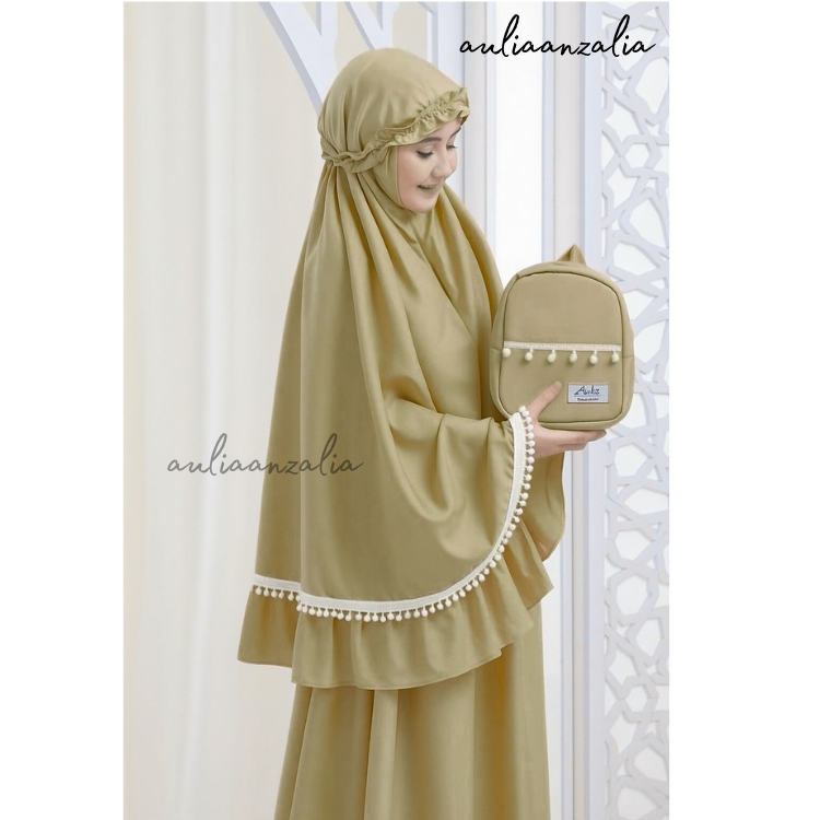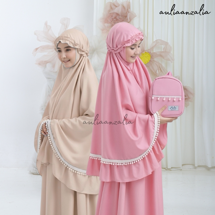 Mukena Anak Lucu Tas Ransel Umur 2–12 Tahun Katun Premium Pompom