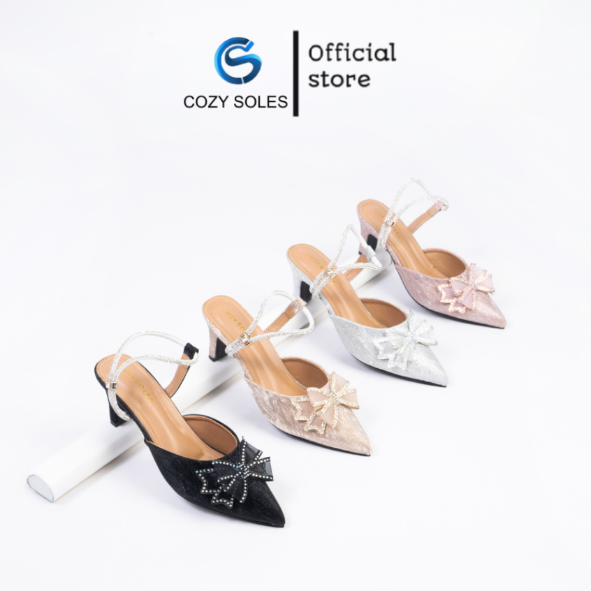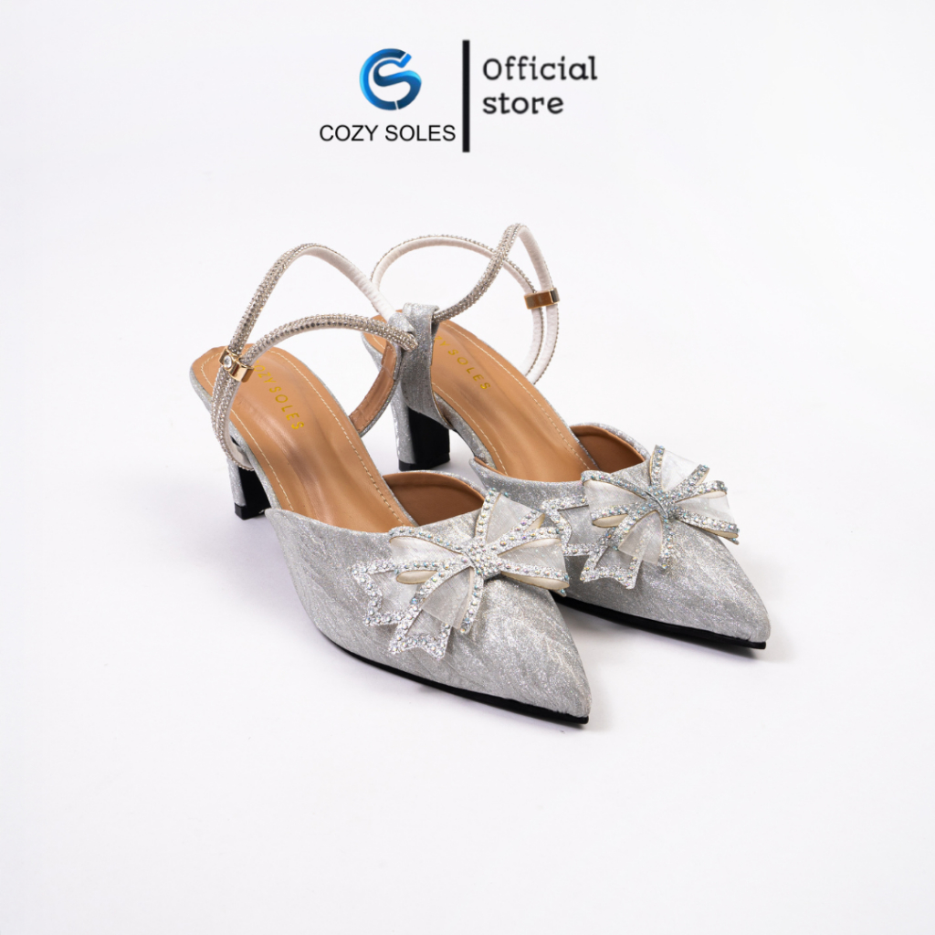 Cozy Soles - Mariposa Heels Sepatu Heels Pesta Wanita Ankle Strap Bahan Kanvas Glitter Hak 7cm
