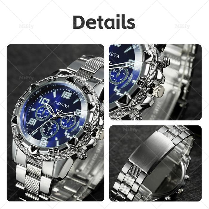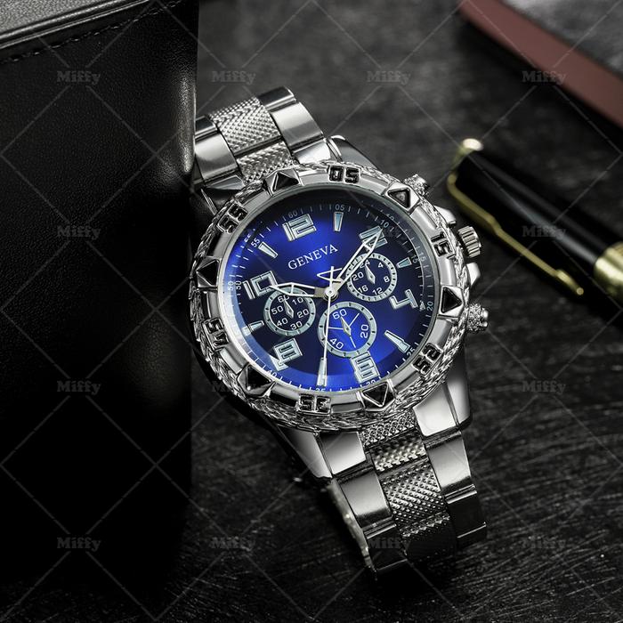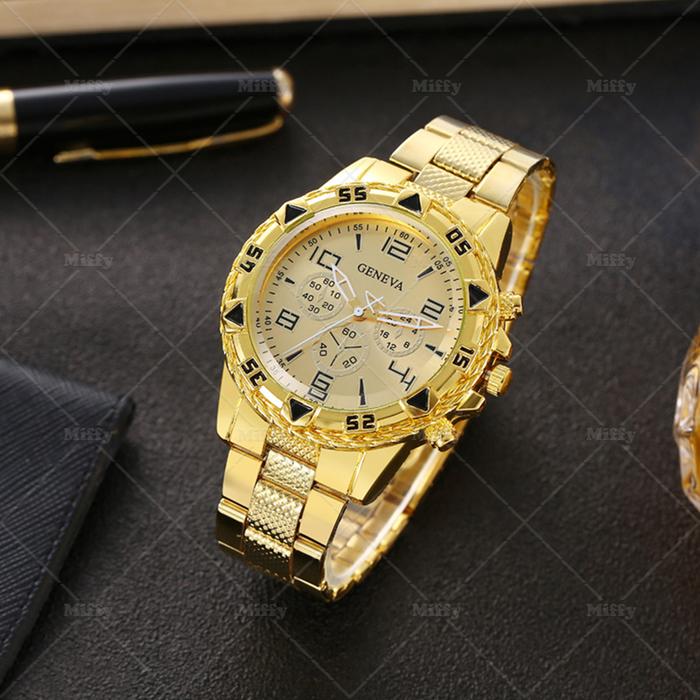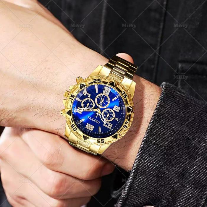 [Star] Miffy Jam Tangan Pria Chrono Bisnis Strap Stainless Steel Analog Quartz Men Watch Fashion - Gold Biru