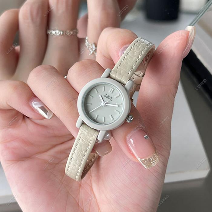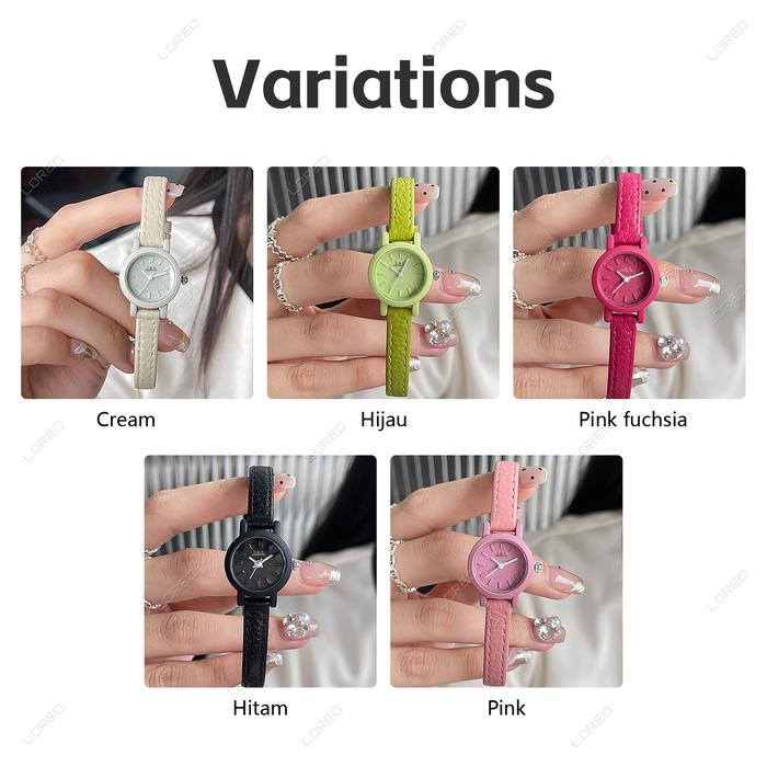 [Star] Loreo Jam Tangan Wanita Kecil Warna Lucu Tali PU Analog Quartz Fashion Remaja - Cream