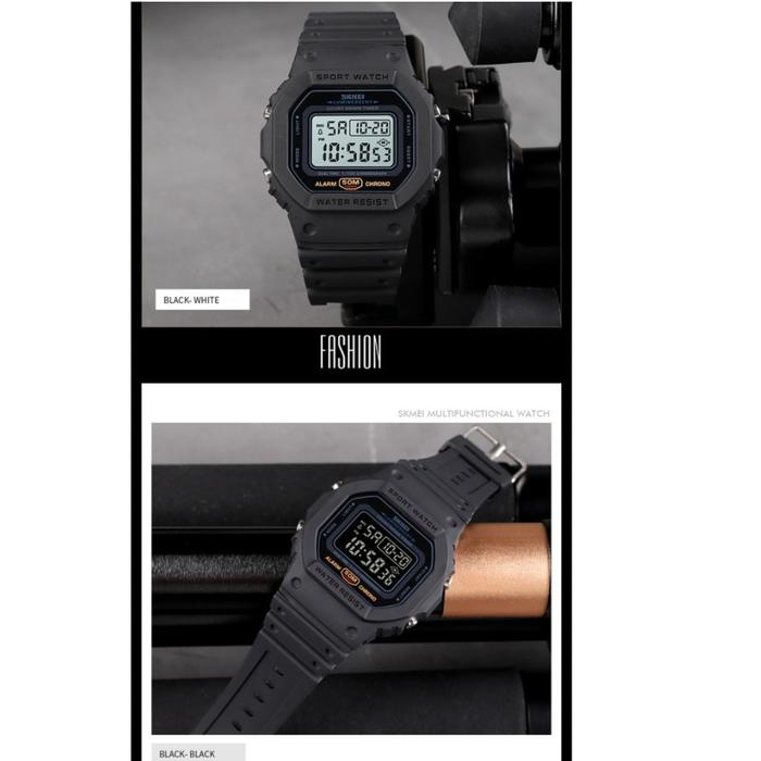 [Star] Jam Tangan SKMEI 1628 (Diameter 4 cm) Digital Sports Pria Wanita LED Original Tahan Air 50M - Hitam Hitam