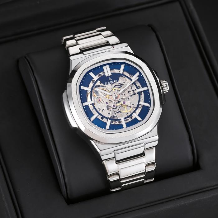 [Star] [ ] RONMAR Jam tangan pria Otomatis Tanpa Baterai Kaca Safir Watches Tahan air 50m 100% original - Silver