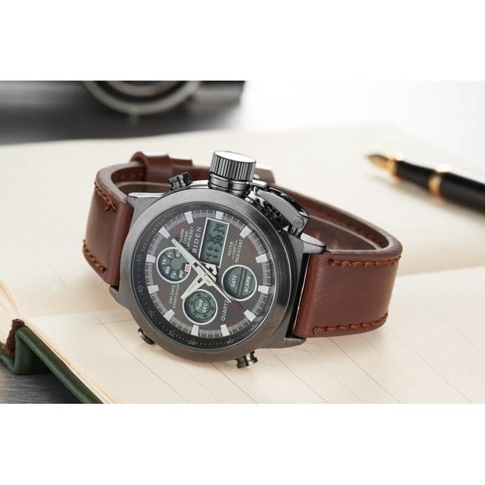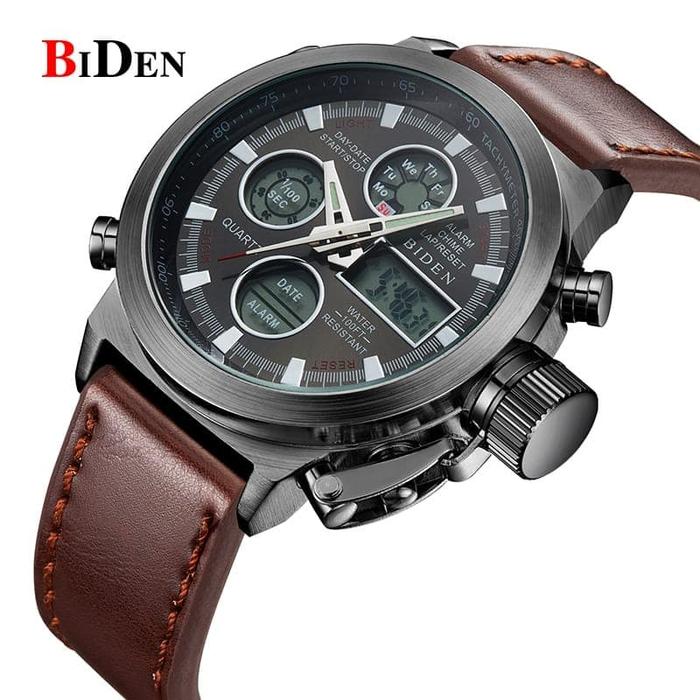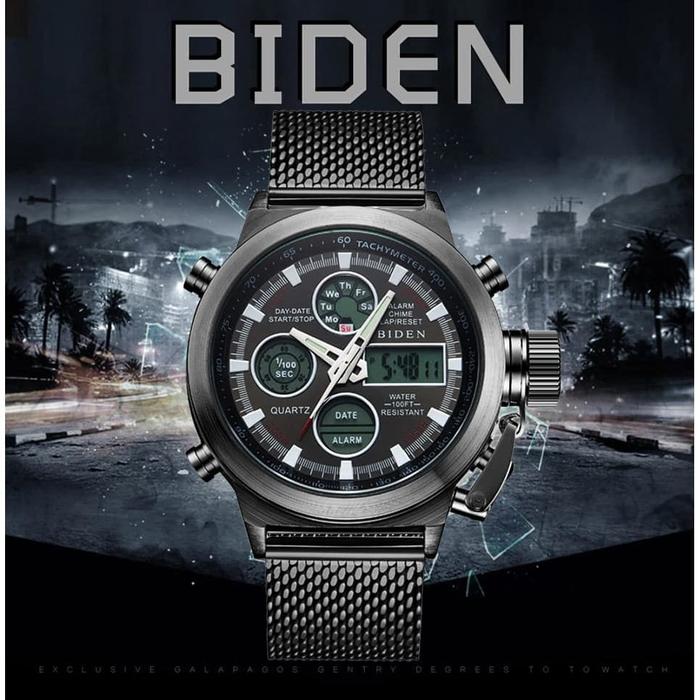 [Star] JAM TANGAN PRIA BIDEN DUAL TIME WATCH LED DIGITAL ANALOG IMPORT STEEL - Mesh Hitam