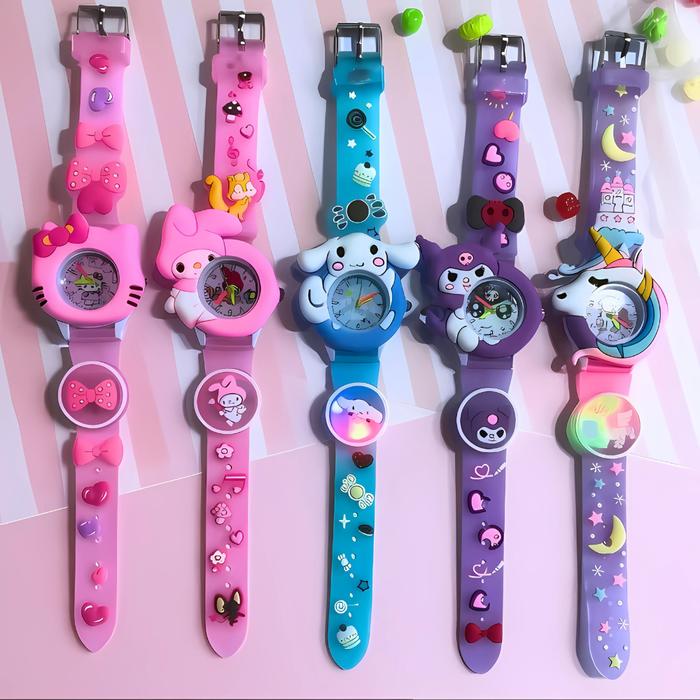 [Star] Trending Jam Tangan Anak Anak Terbaru Strap Rubber karet Berlampu Kedip Dial Karakter Sanrio Lucu - Unicorn