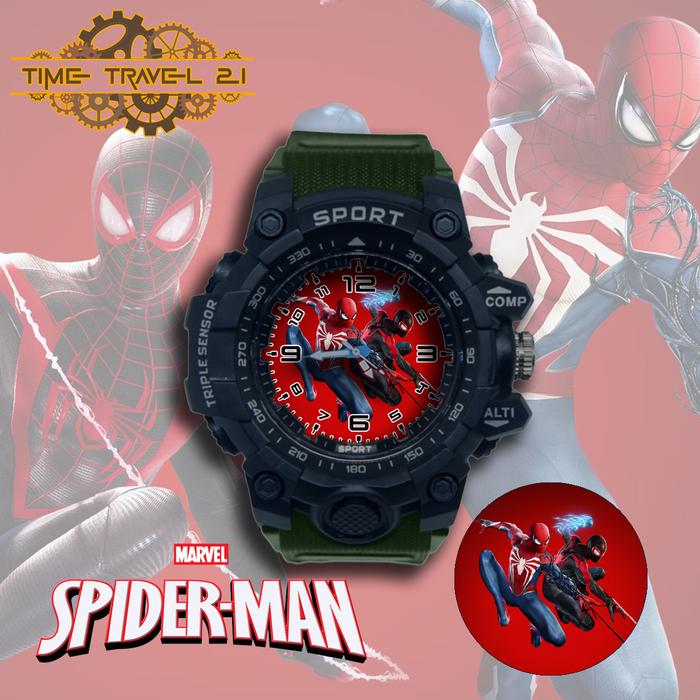 [Star] Jam Tangan Anak Sport SPIDERMAN Strap Ruber Sporty Anti Air /Jam Tangan Sport 01X6SP01 - MERAH