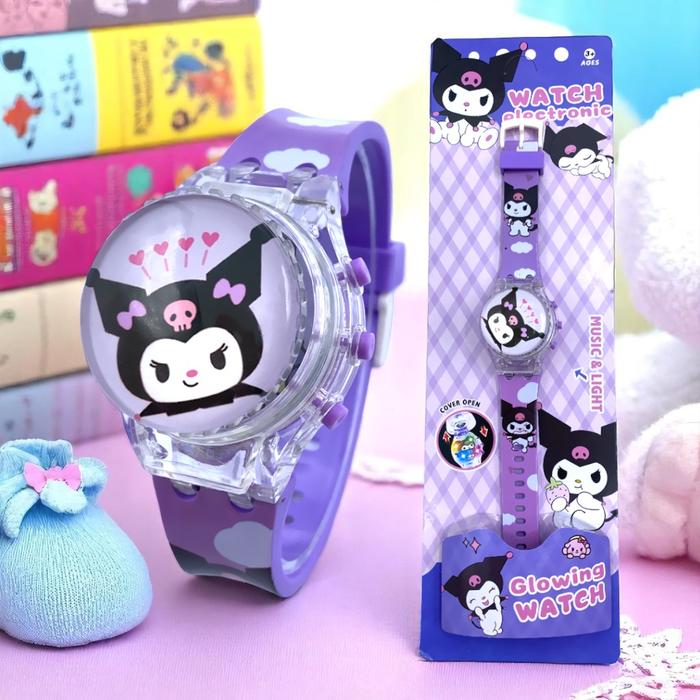 [Star] Jam Tangan Anak Spinner Putar 360° Kuromi Dengan Karakter Musik Plus Lampu Warna Warni Cewek Cewe Cowo Fashion -