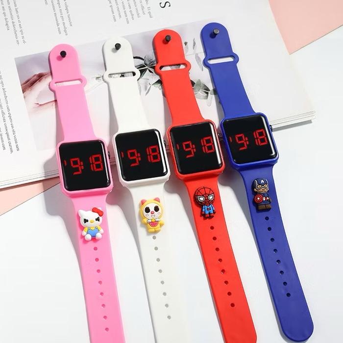 [Star] Jam Tangan Anak Pikacu Doraem0n Superhero Digital Watch Persegi Fashion Anak - hitam- sincan, JT persegi