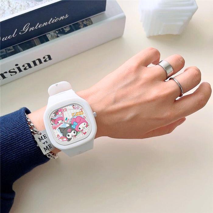 [Star] Jam Tangan Anak Kartun Sanrio Kuromi - Dial Persegi Lucu, Motif Imut, Tahan Air, Cocok untuk Setiap Kesempatan! -