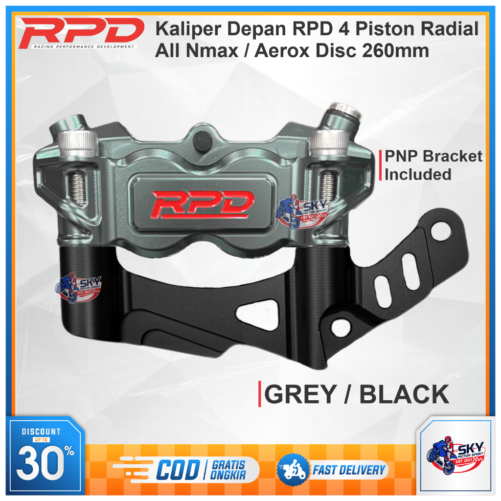 Kaliper Radial Depan RPD All Nmax Aerox Plus Bracket Pitch 100 Disc 260mm 4p 4 Piston Original