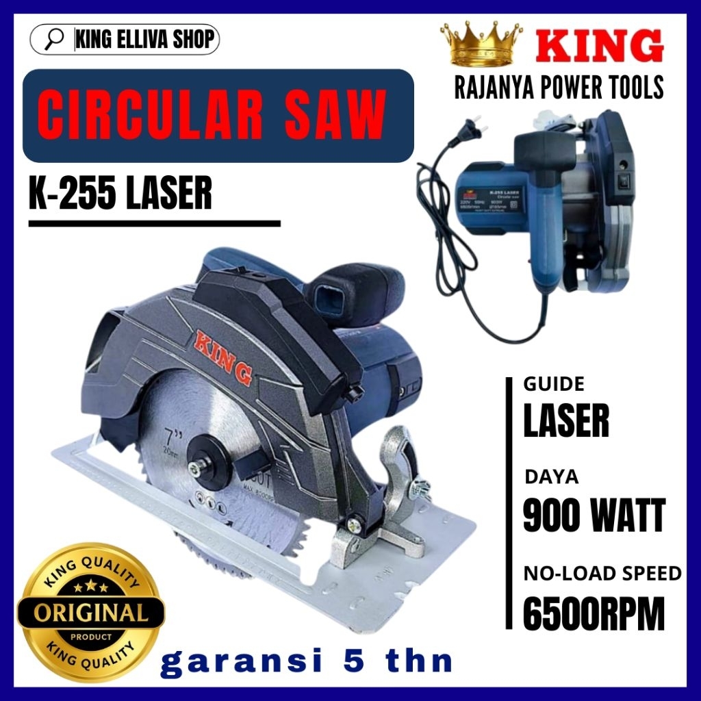 MESIN CIRCULAR SAW KING TYPE K-255 LASER HEAVY DUTY EXTREME KHUSUS UNTUK PROFESIONAL DAN INDUSTRI