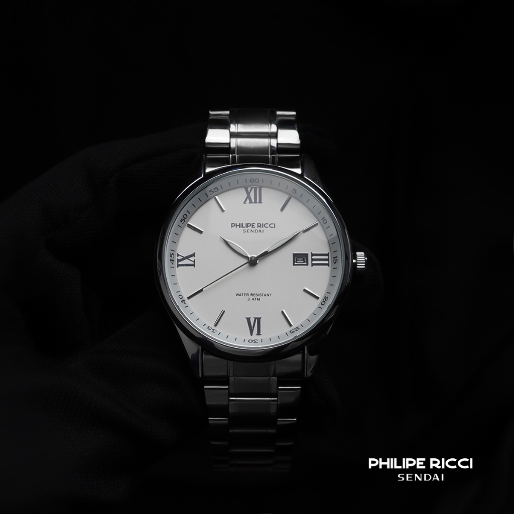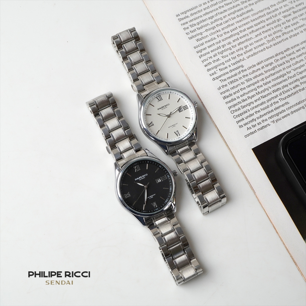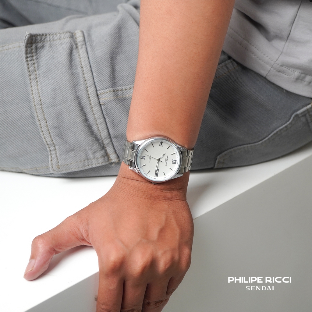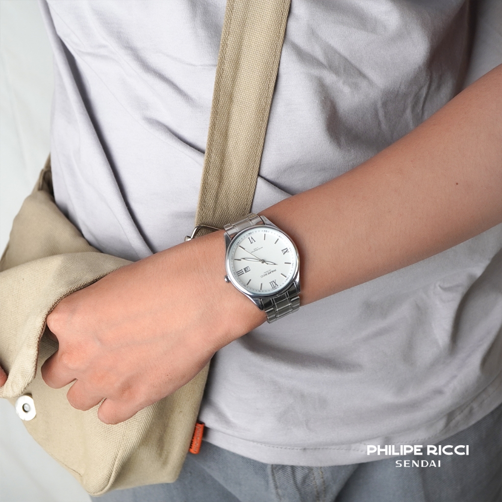 Philipe Ricci Sendai Jam Tangan Pria Rantai 100 PERSEN Original Simple Terbaru Stainless Steel 6343 Free Box