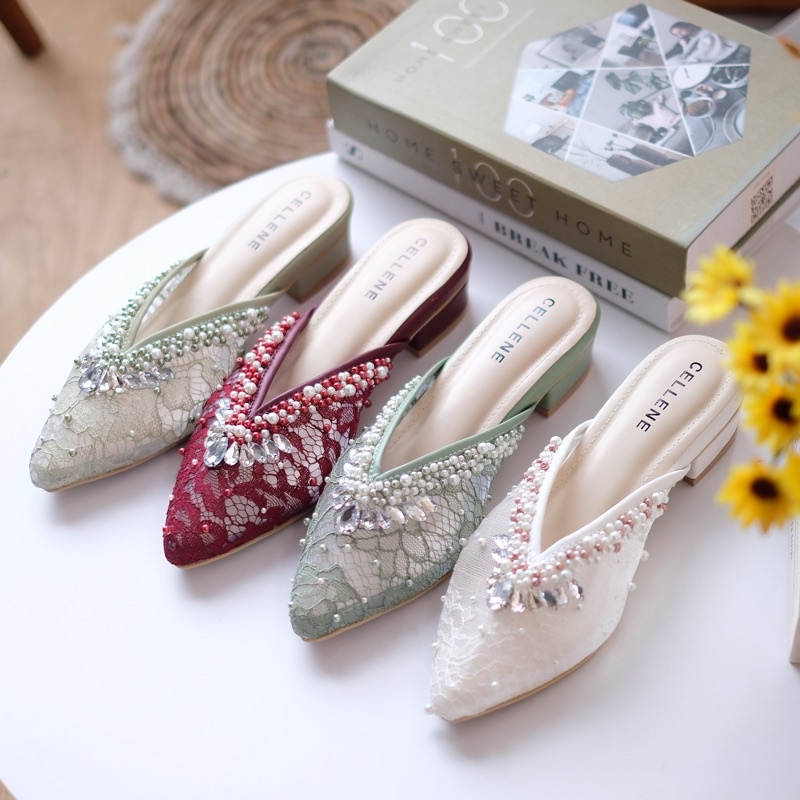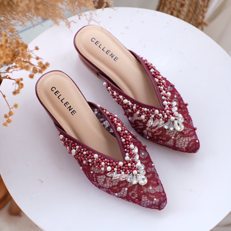 CELLENE Arae Beads Heels 7 warna / wedding shoes 3cm payet selop brukat