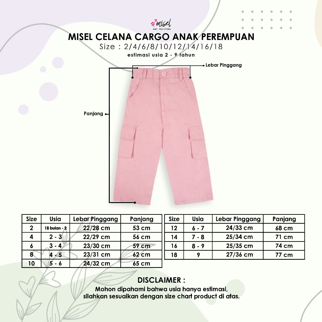 Misel Celana Panjang Cargo Anak Perempuan Celana Cargo Pdl Anak Cewek 2-9 Tahun