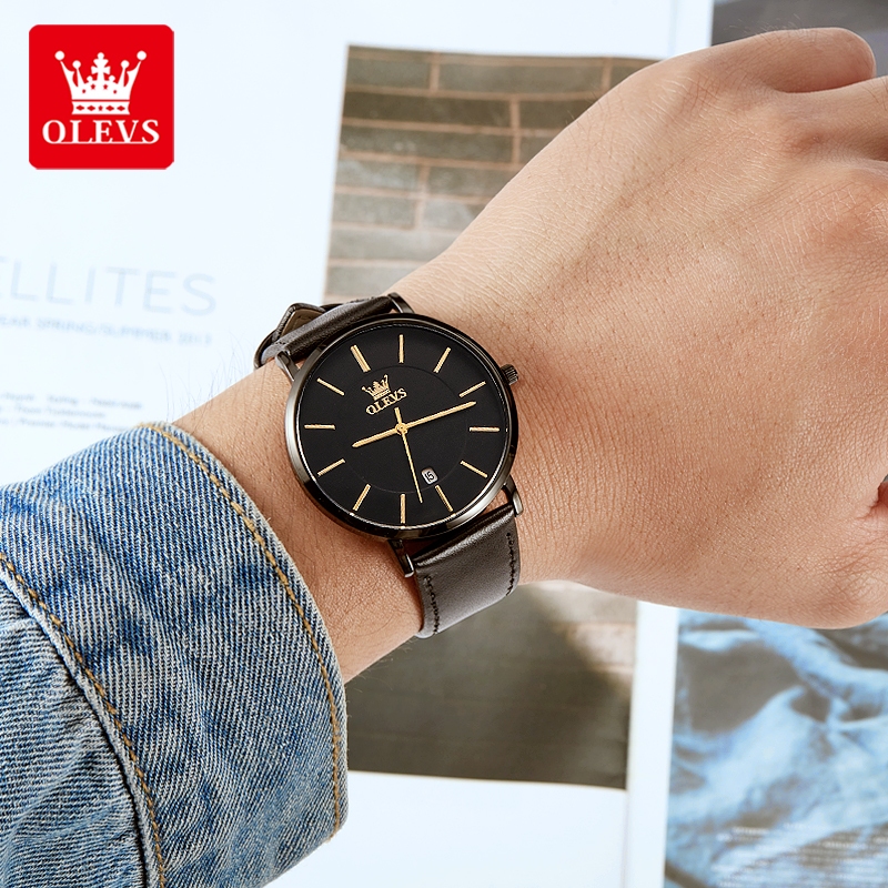 Olevs Jam Tangan Pria Anti Air Original 100 PERSEN Tali Kulit Luxury Kalender Quartz Watch Men 5869