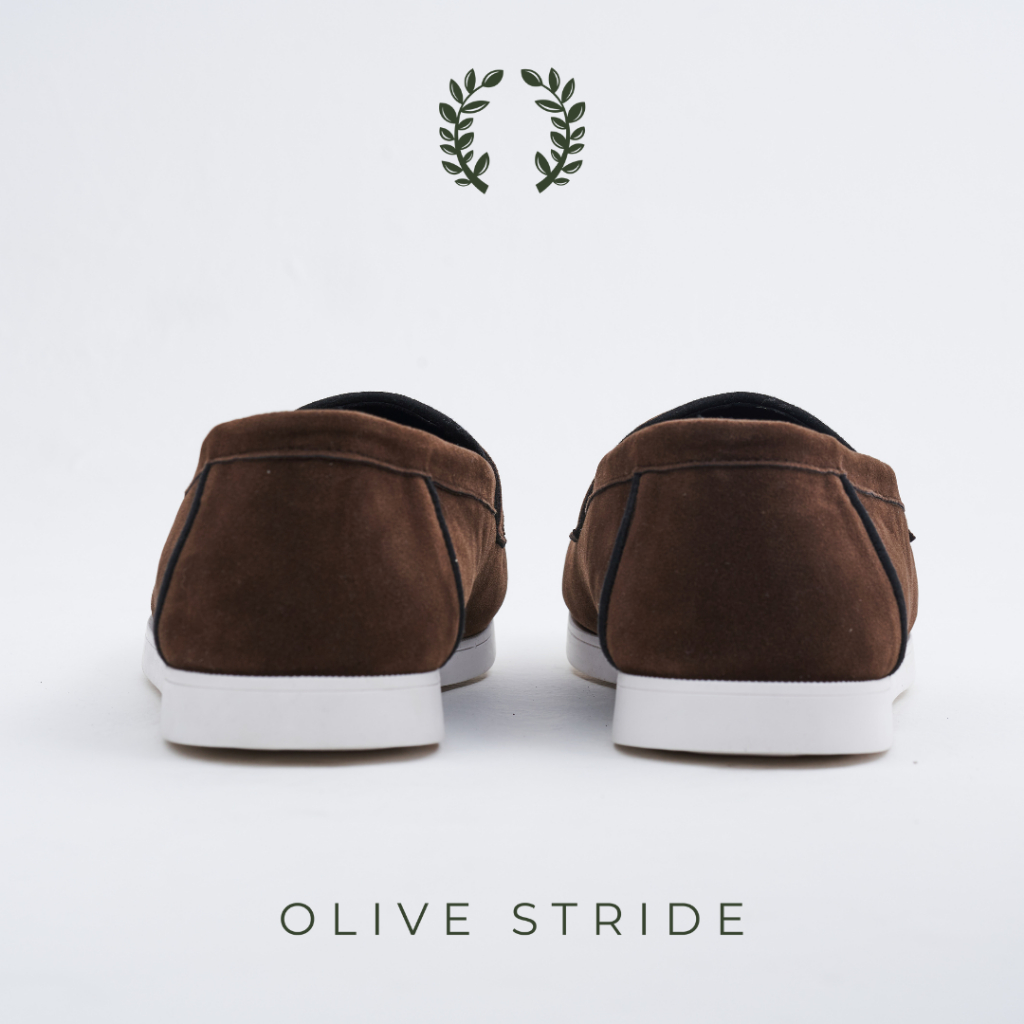 Olive Stride - Syrax Loafers Suede In Coffee Sepatu Slip On Pria Cokelat Tua Summer Walk