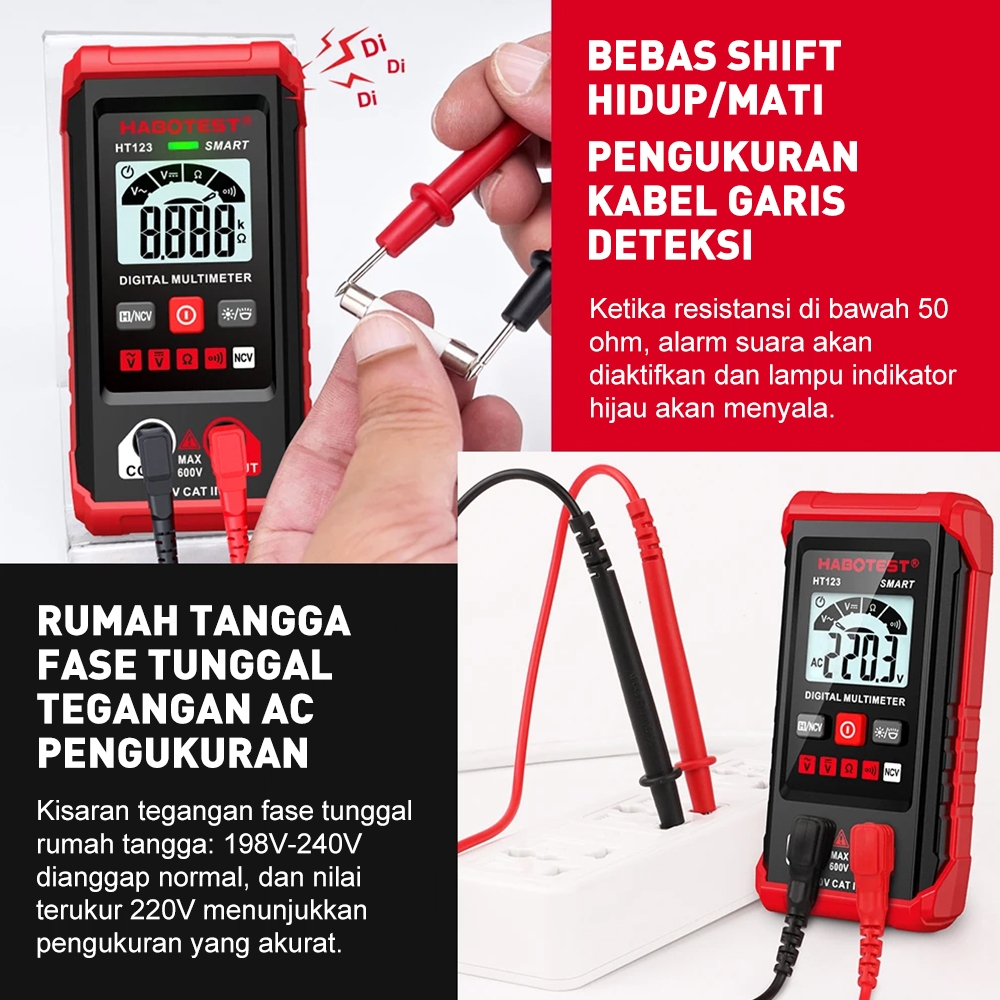 HABOTEST HT123 Digital Multimeter 600V Pengukur Tegangan Listrik Digital Multi Meter Volt Meter Cek Arus Dan Tegangan Resistor