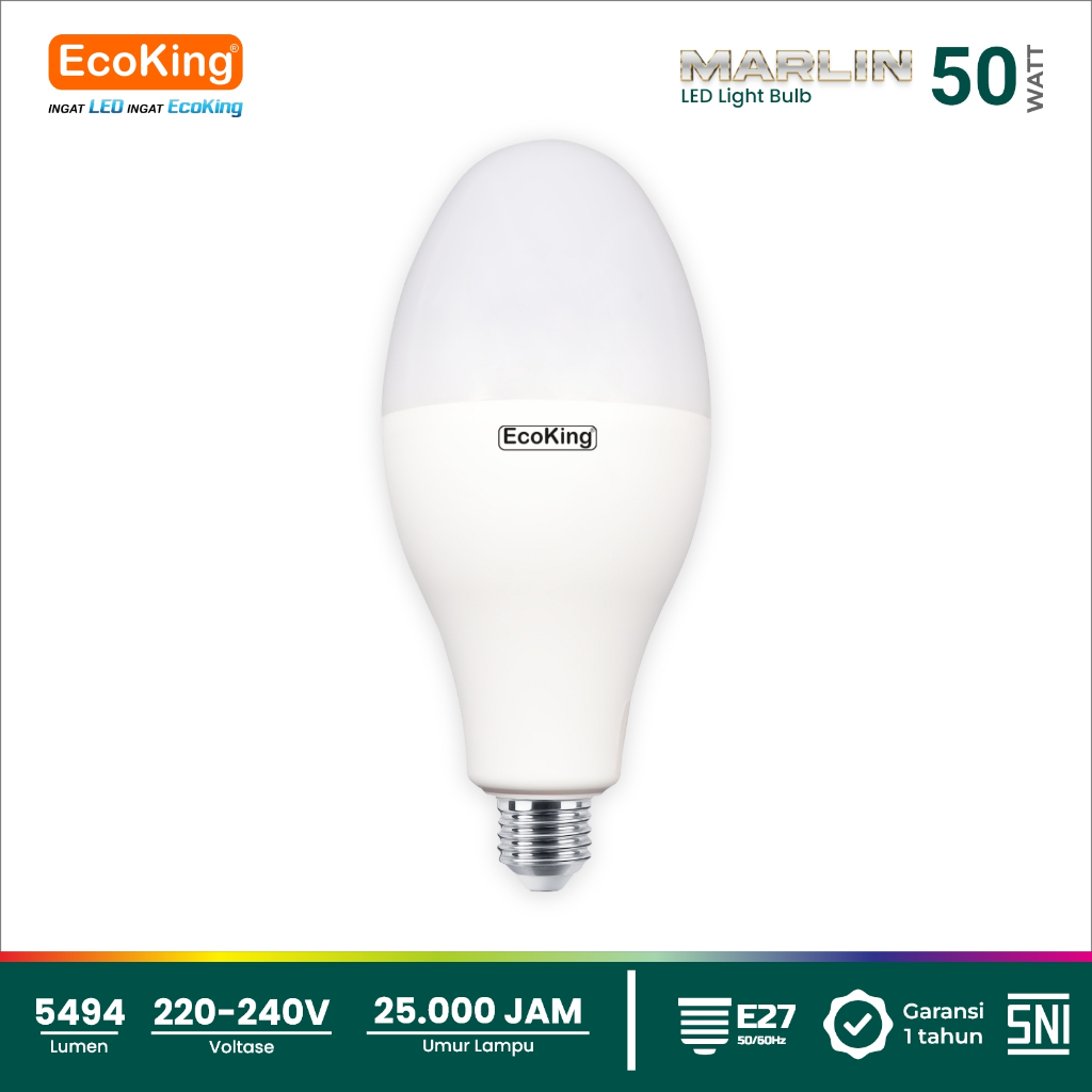 EcoKing Lampu Bohlam LED Non-Mercury Marlin 50W Cahaya Putih 3 PCS