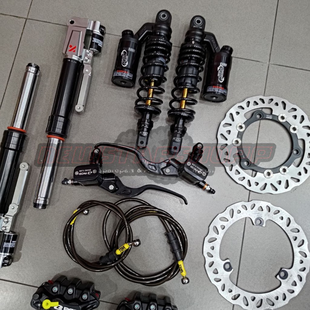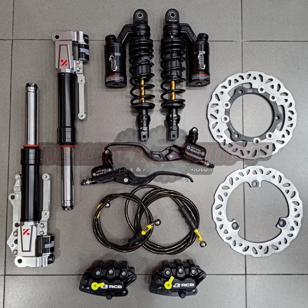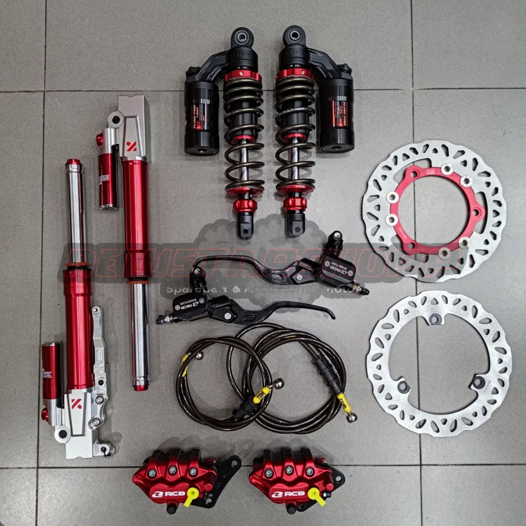 Paketan Lengkap Master rem RCB E3 14mm kotak kanan kiri + Kaliper RCB S Series 2 piston + Selang rem Carbon + Piringan F