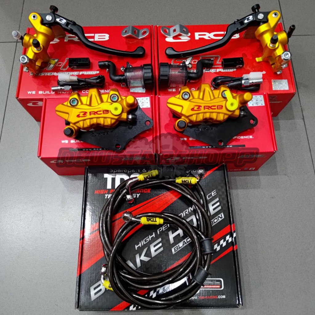 Paketan Master rem RCB S1 Facelift 14mm set kanan kiri radial tabung pisah + Kaliper S26 Depan Belakang + Selang rem Pac