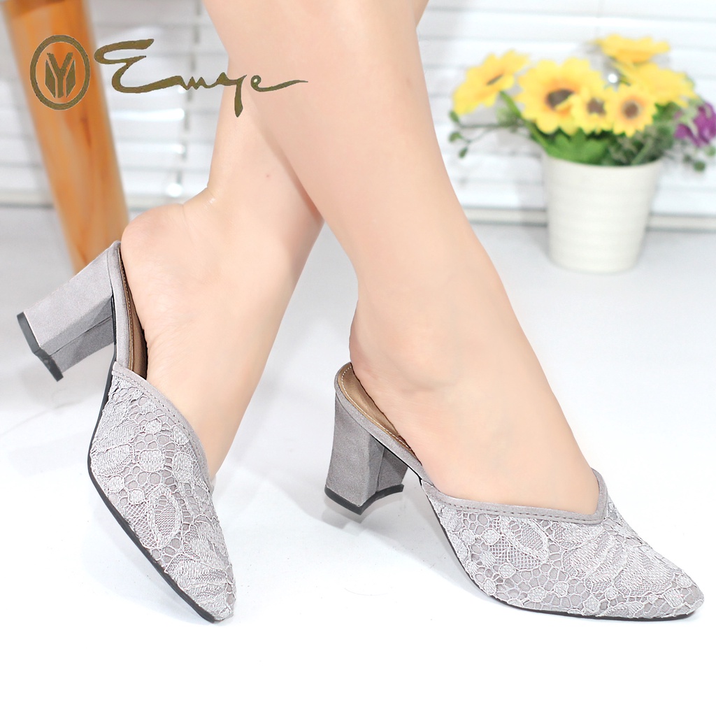 Emye - Sepatu Pengantin Wanita 36-41 Wedding Brukat 7cm Sandal Pesta Kondangan