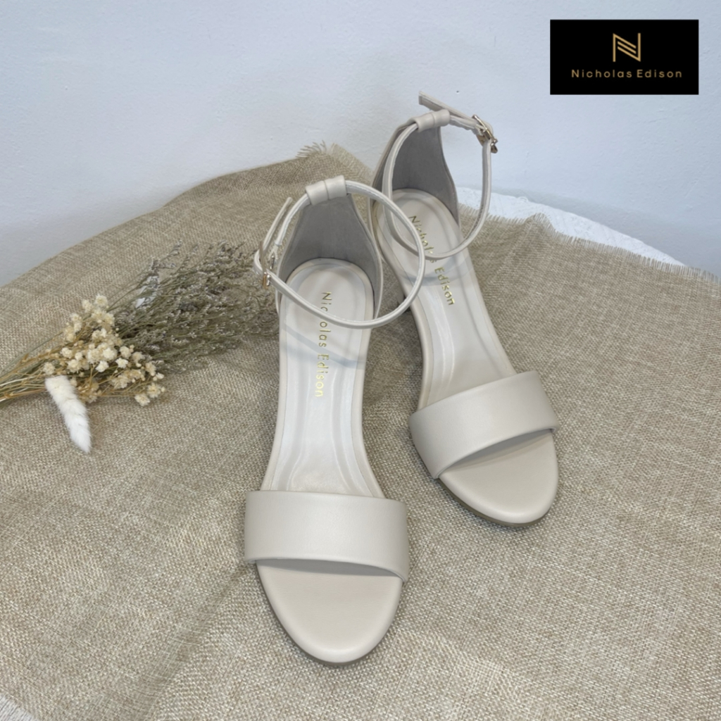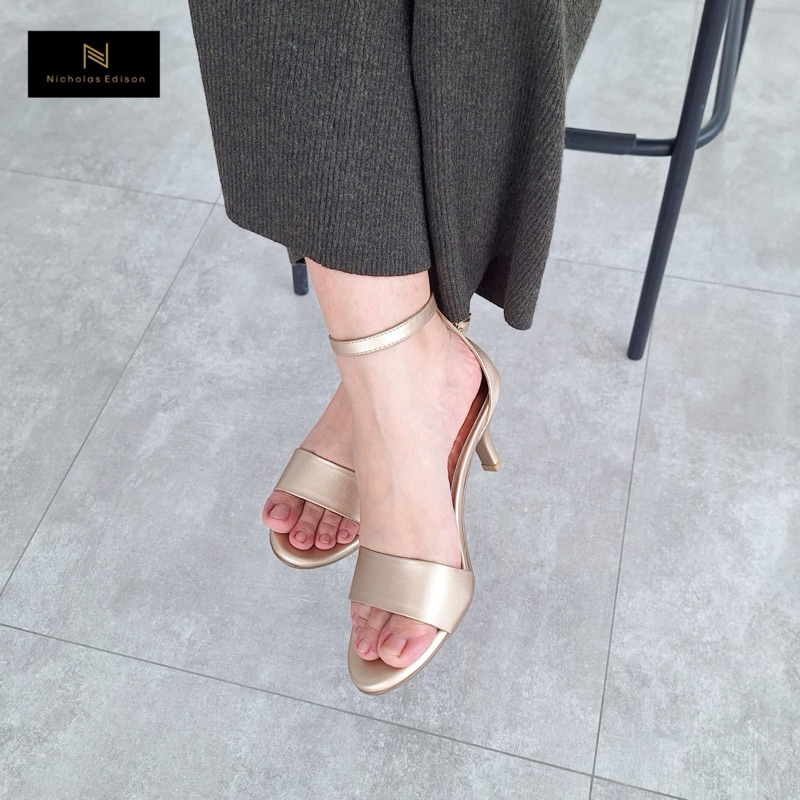 nicholas edison heels riesa 2 sepatu peep toe hak tinggi sedang tali kait emas pesta