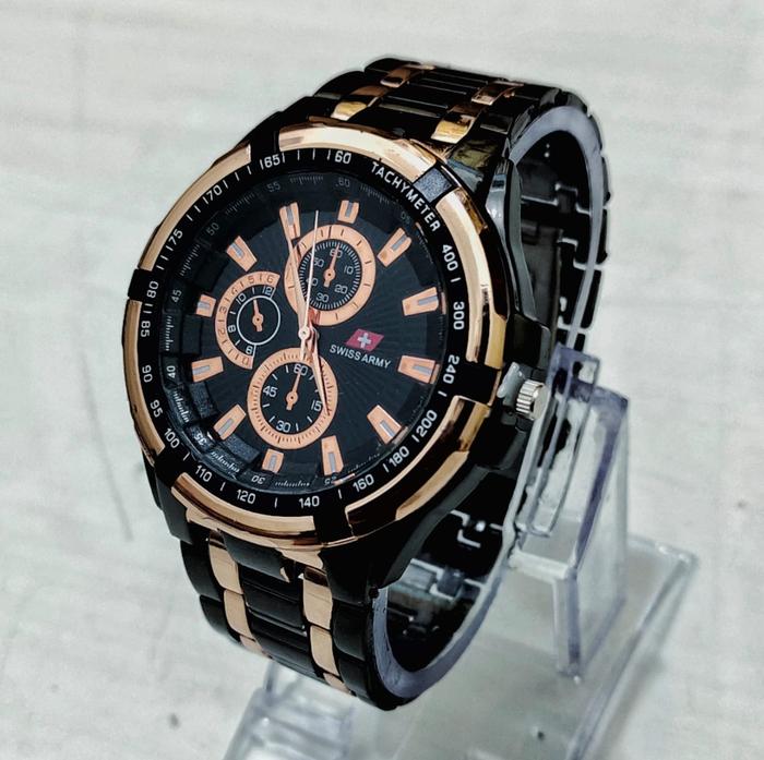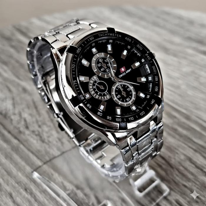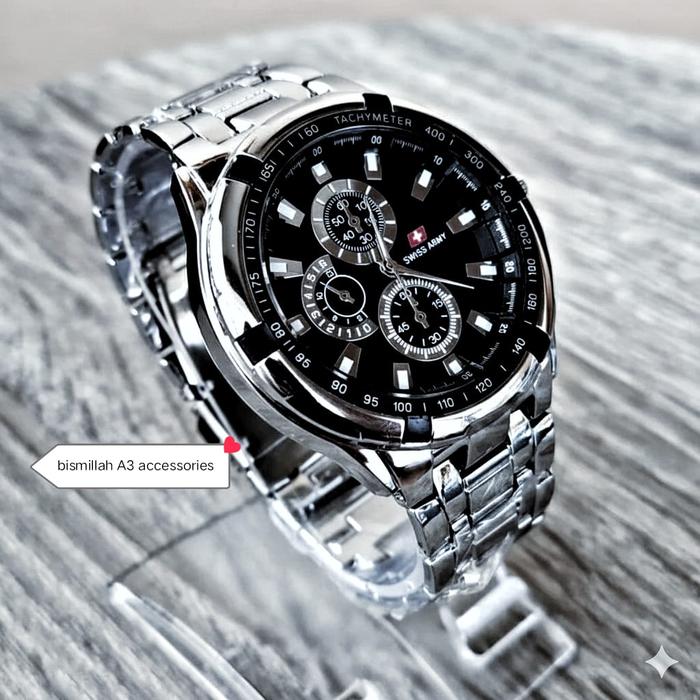 [Star] jam tangan pria unisex terlaris rantai stainless steel Analog jam tangan Watches - HITAM