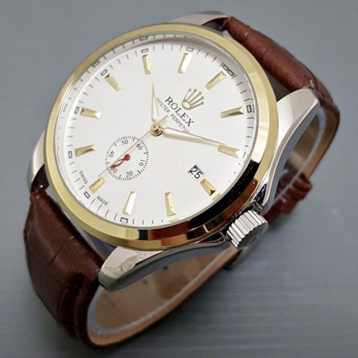 [Star] Jam tangan pria otomatis kulit chrono detik angka balok automatic - Kombi hitam